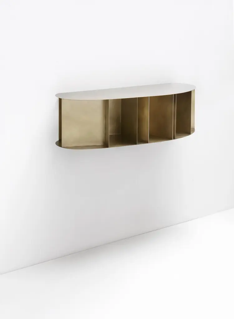 Existence Wall Mounted Bookcase by De CastelliDimensions: W 123 x D 41 x H 39 cmMaterials: Orbitale DeLabré BrassStainless Steel version available. Two, Three, Four and Five floor versions are also available. Please contact us for any request.Available in wall-mounted versions, Existence consolle arose as an overlapping of small, varied boxes, like the experiences to one’s life: a consolle that - as for the totem-bookshelf - is designed to contain books and objects in modules that repeat, though the same form never appears twice.DE CASTELLI“HARD COUTURE”Faithful to its decision to reinstate the special role of metal in design and experimentation, De Castelli infuses artisan ideas and workmanship into industrial processes, leading to entirely original results. The encounter with design inspires an approach to materials founded upon respect for their potential, be it hidden or obvious, which emerges slowly in a collection of pieces that, despite being part of a series, remain unique.Unique not only for the hand that has created them, but also for the singular cultural path that focuses on the aesthetic (and not just practical) value of the primordial material with which De Castelli shapes living spaces.A BESPOKE APPROACHEach object, even in the repetition of form, is a creative act in and of itself, one that incorporates a heritage of constantly-evolving expertise and research. The equation that relegates ‘cold’ metals to the margins of furnishing projects is thus overturned, bringing iron, brass and copper, in their infinite variations and finishes, to the centre of an entirely renewed stage, allowing them to finally shine with their own light.SUSTAINABILITYDe Castelli has always been committed to making the entire production cycle increasingly sustainable, aware that metal, the material with which its business identifies itself, is precious and must be treated with care, without waste.PEOPLE FIRSTThe wide spaces of the De Castelli headquarters in Crocetta del Montello (TV) allow those who work to enjoy environments where order, cleanliness and safety are always maintained and guaranteed. An attitude of attention and respect for people that has led to the shared ethical code.