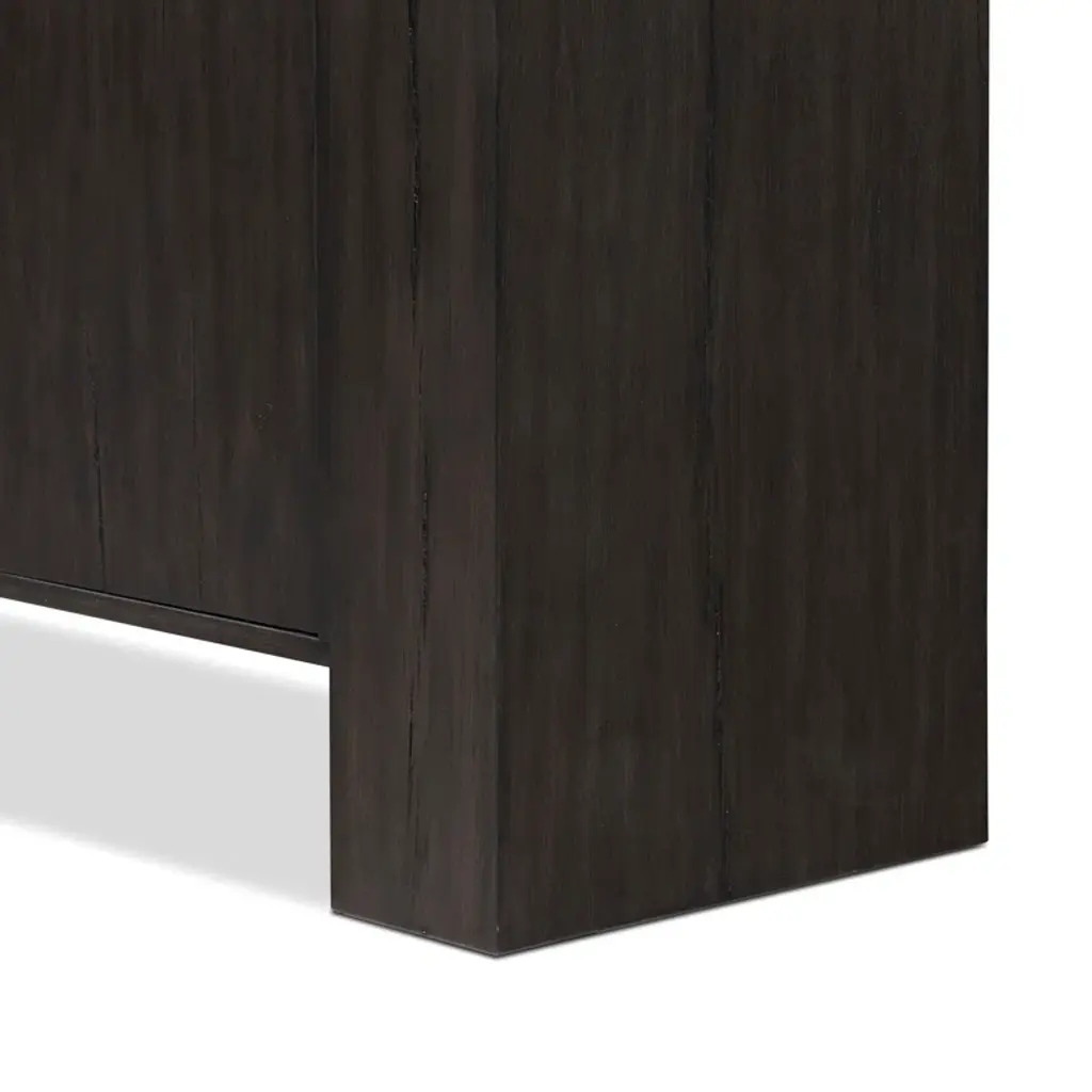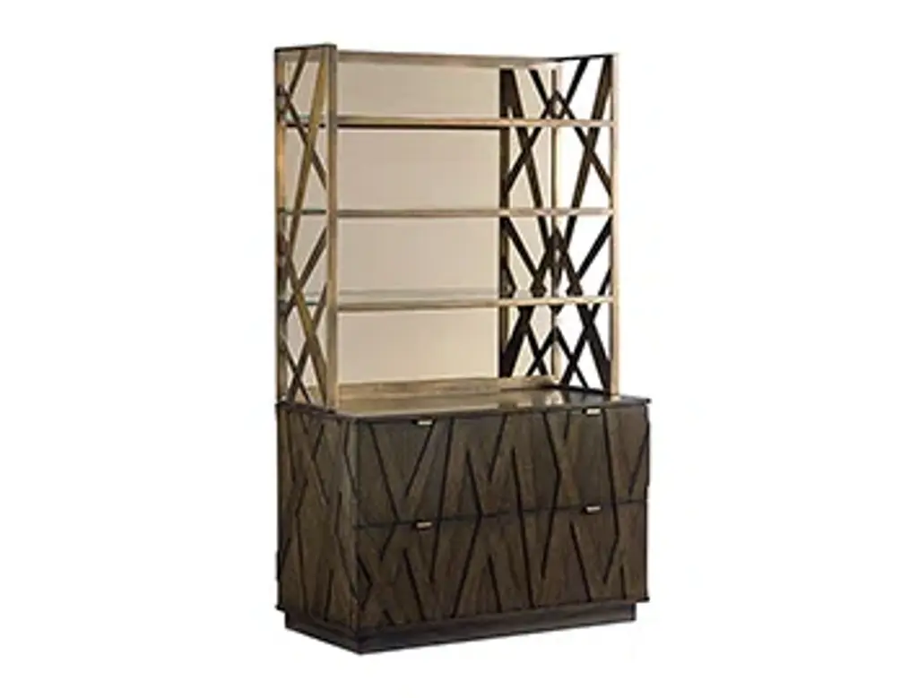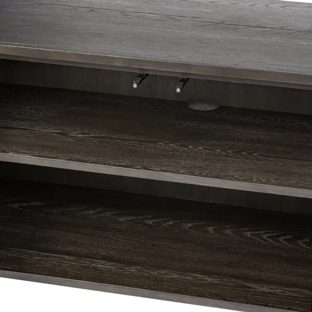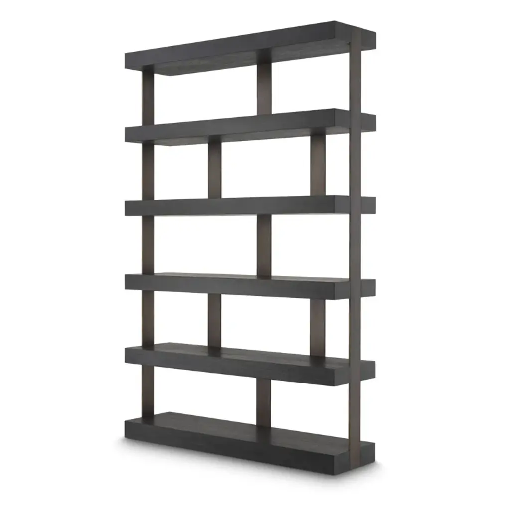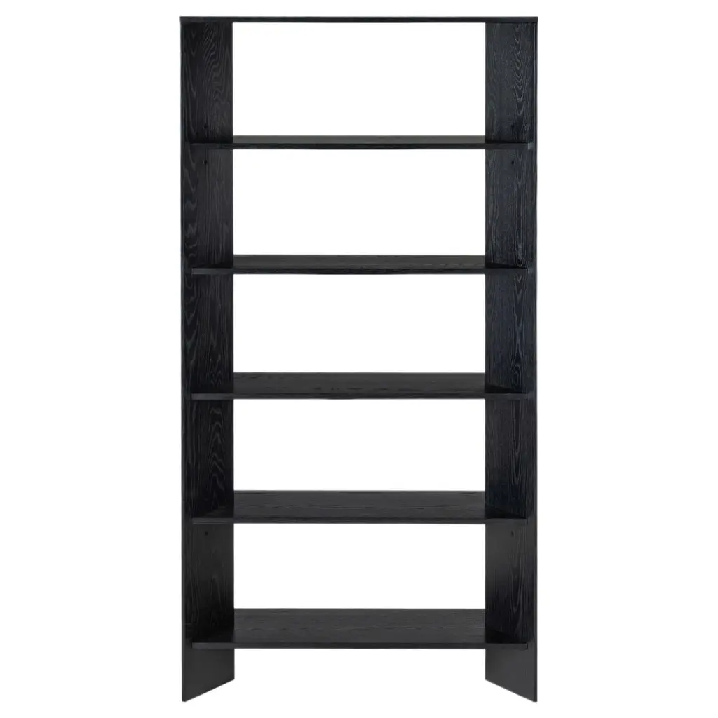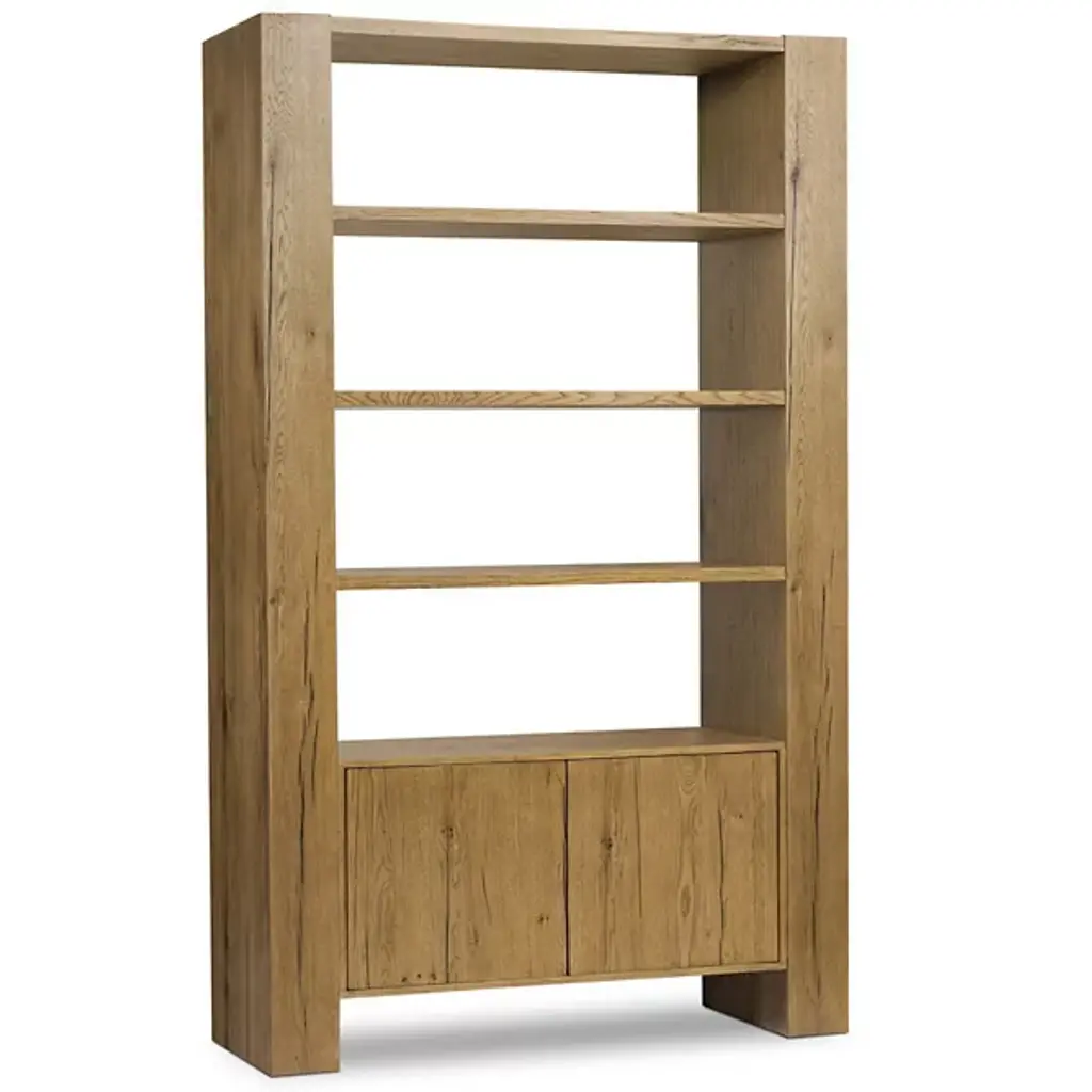 Crafted from a mix of solid oak and veneer, this grand-scale bookcase becomes a focal point, showcasing the natural graining and character of the wood. Its wide frame and clean push-latch cabinet doors ground the room while offering the perfect backdrop for favorite books and treasured keepsakes.