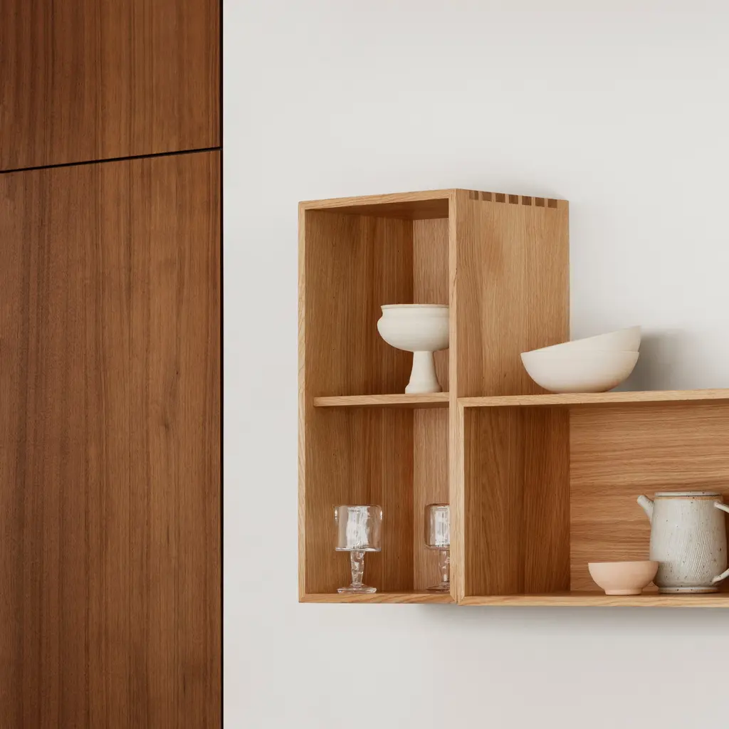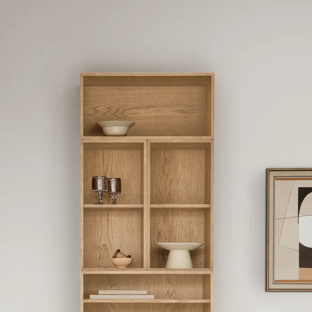 An upright bookcase is a prime building block of Preben Fabricius and Jørgen Kastholm’s minimalist FK63 system with a focus on proportion, handcrafted details and natural materials. Made of solid FSC-certified solid oak, it features thoughtful joinery details and an oiled finish to enhance the woodgrain.