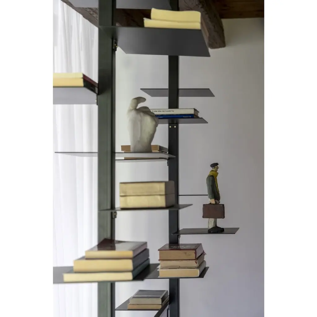 Elevate your space with Mogg Adelaide - a versatile floor-to-ceiling bookcase made of solid Iroko wood or matte black iron. With 13 shelves for ample storage, its rotating column adds a unique touch. Its elegant structure and asymmetrical shelves make it a functional work of art.