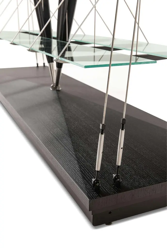 Prices vary dependent on the chosen material. The shelf is available in natural ashwood or black stained ashwood with elements in either brass or satin brass chrome. Bookcase designed by Franco Albini in 1940. Relaunched in 2011-19. Manufactured by Cassina in Italy. Defying the laws of physics, going beyond what we normally understand by the conditions of equilibrium, this bookcase is nothing short of a manifesto for Cassina’s design and construction capabilities. After a lengthy period of research and development, ably assisted by state-of-the-art technology, the company’s designers created a production prototype of the original 1940 piece that architect Franco Albini made as a one-off for his Milan home.
