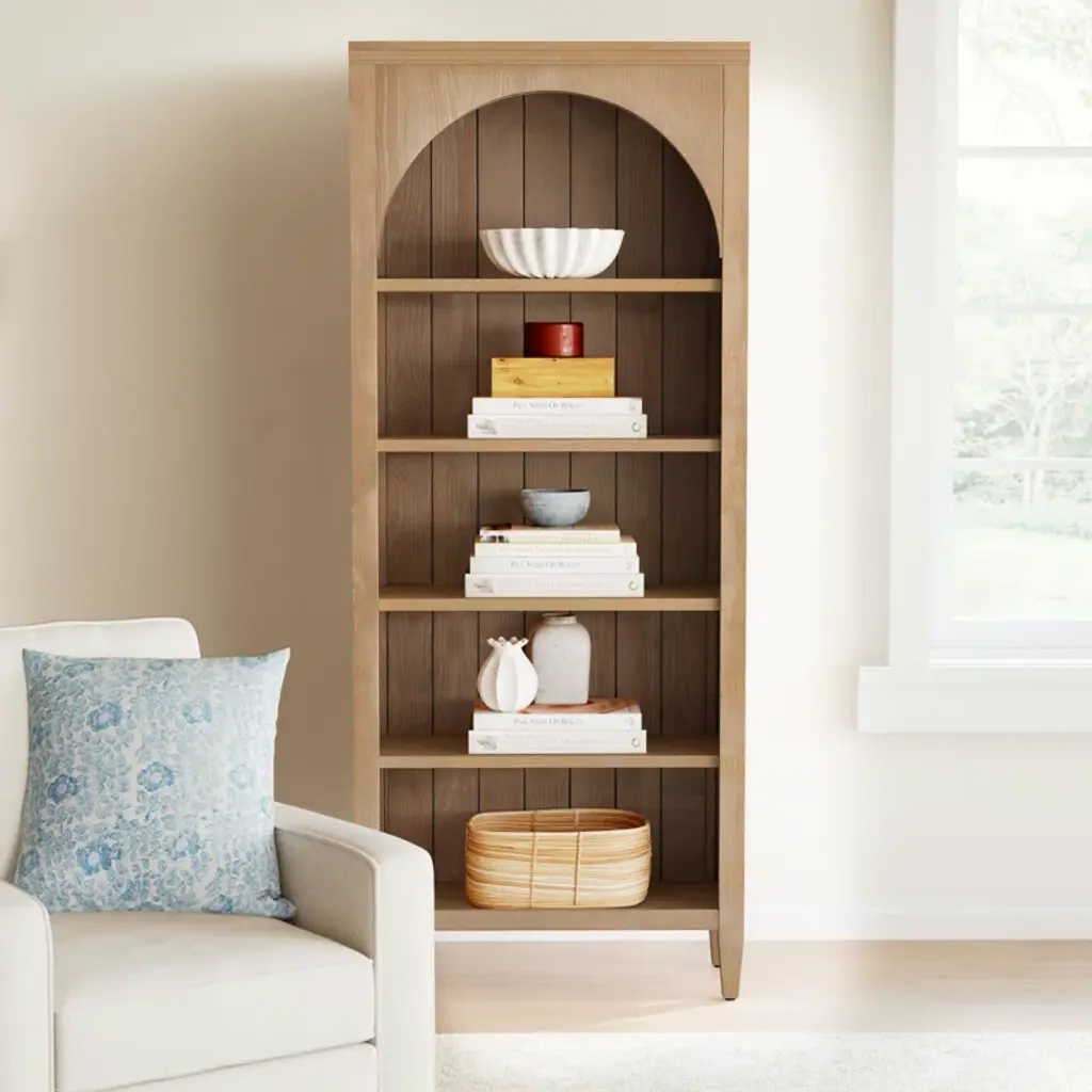 Gayle is inspired by today's relaxed lifestyle, set to create a statement. Its unique natural finish appears dry with wire brushing and highlighting the wood grain for added depth and texture. Gayle's scale is modern with arch elements that are pulled from traditional inspiration. Slight shaping of breakfronts and arched side panels create a softness that ties the collection together to form a clean and casual look, perfect for creating calm in a busy workspace.