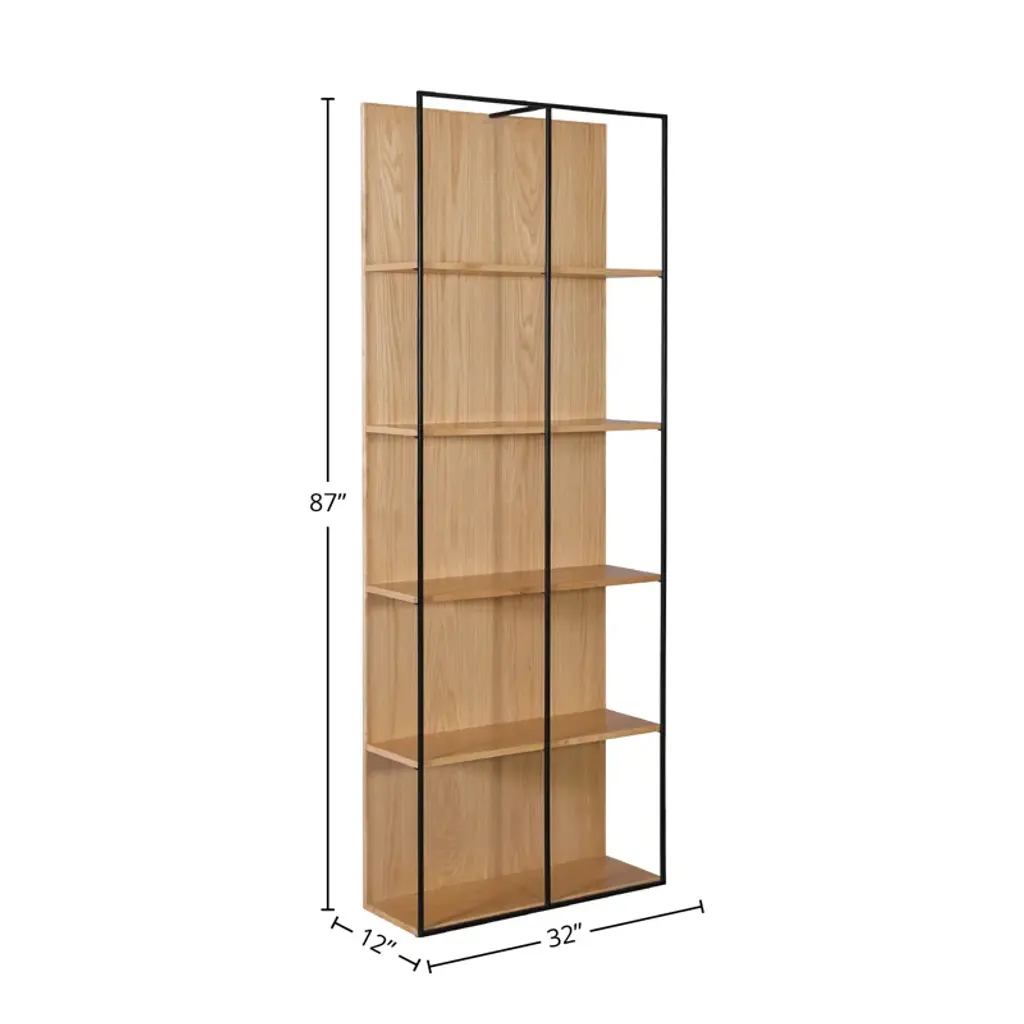 Gerald 87" Tall Oak Veneer Bookcase, Natural