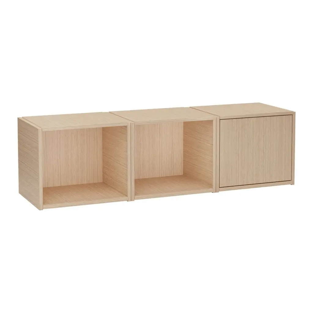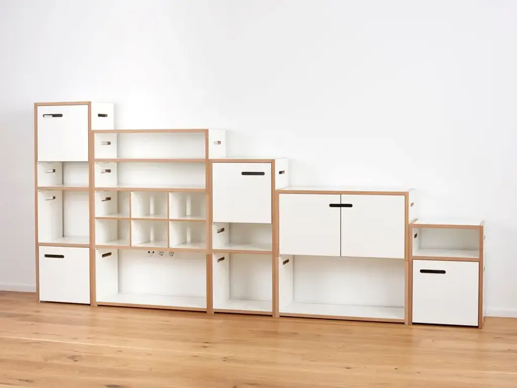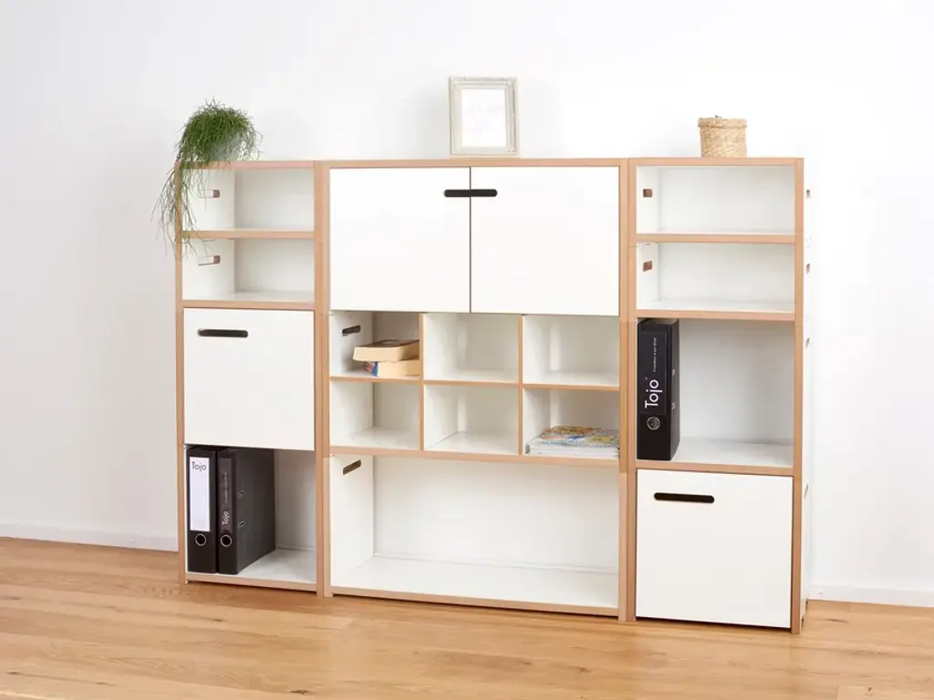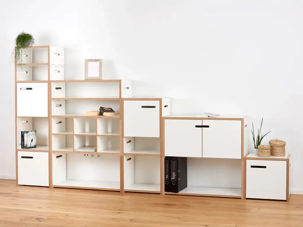 The Tojo HALBSTARK is the little brother of the Tojo HOCHSTAPLER. The two shelving systems can be perfectly combined with each other thanks to their identical design. The design options are now virtually unlimited. As with the Tojo HOCHSTAPLER series, modules with doors are also available. The doors are left or right - as you like. Also new in the range are the narrow modules. These are exactly half the height of the normal modules.