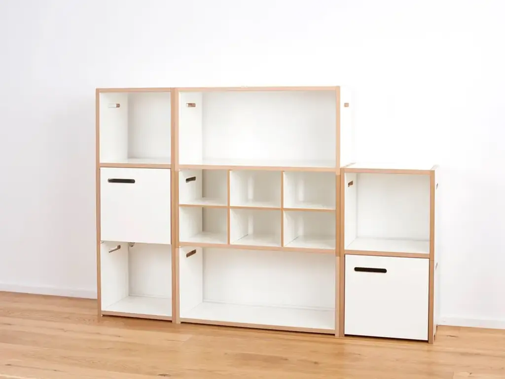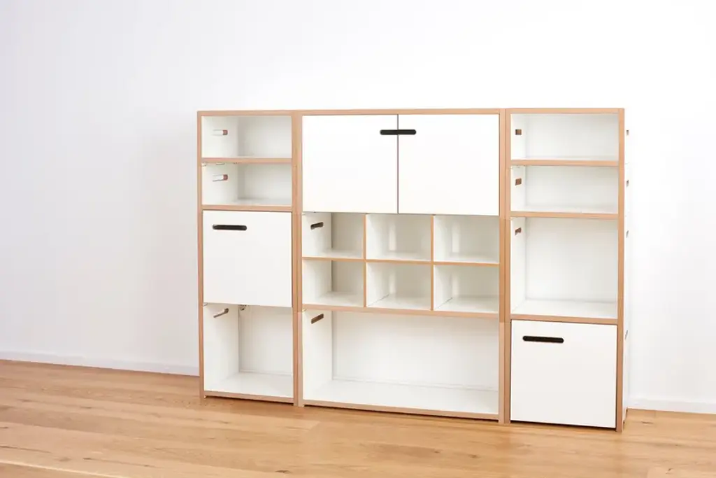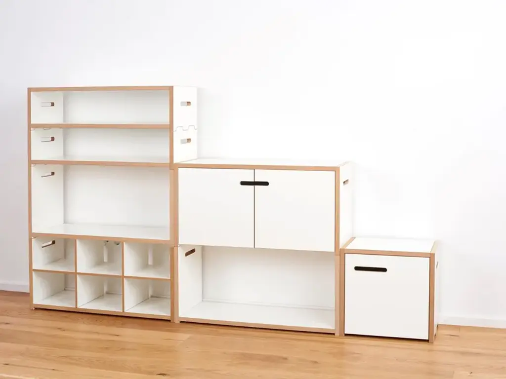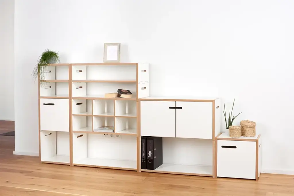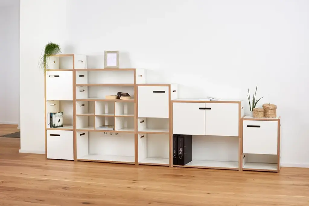 The Tojo HALBSTARK is the little brother of the Tojo HOCHSTAPLER. The two shelving systems can be perfectly combined with each other thanks to their identical design. The design options are now virtually unlimited. As with the Tojo HOCHSTAPLER series, modules with doors are also available. The doors are left or right - as you like. Also new in the range are the narrow modules. These are exactly half the height of the normal modules.