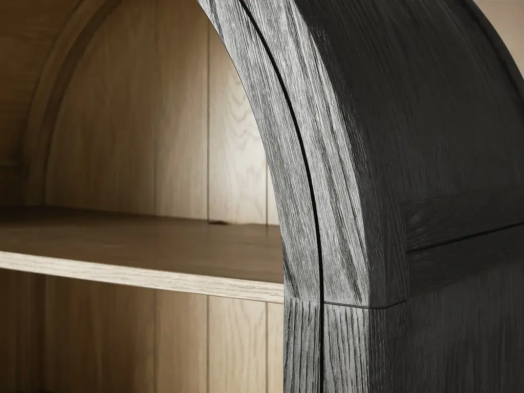 Where gentle curves meet the natural graining of oak, our artisan-crafted Hattie Collection awaits. Hattie’s generous shelves mean there’s always room to display favorite curiosities and everyday essentials.