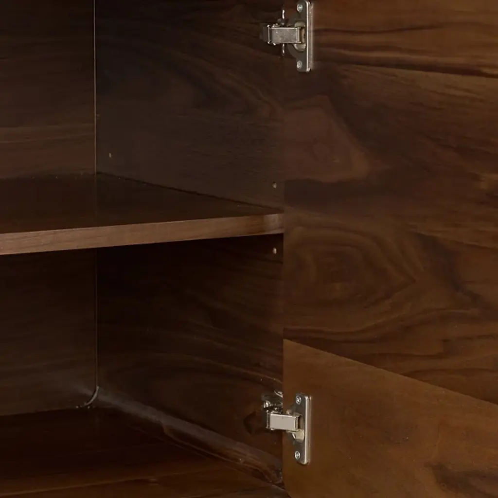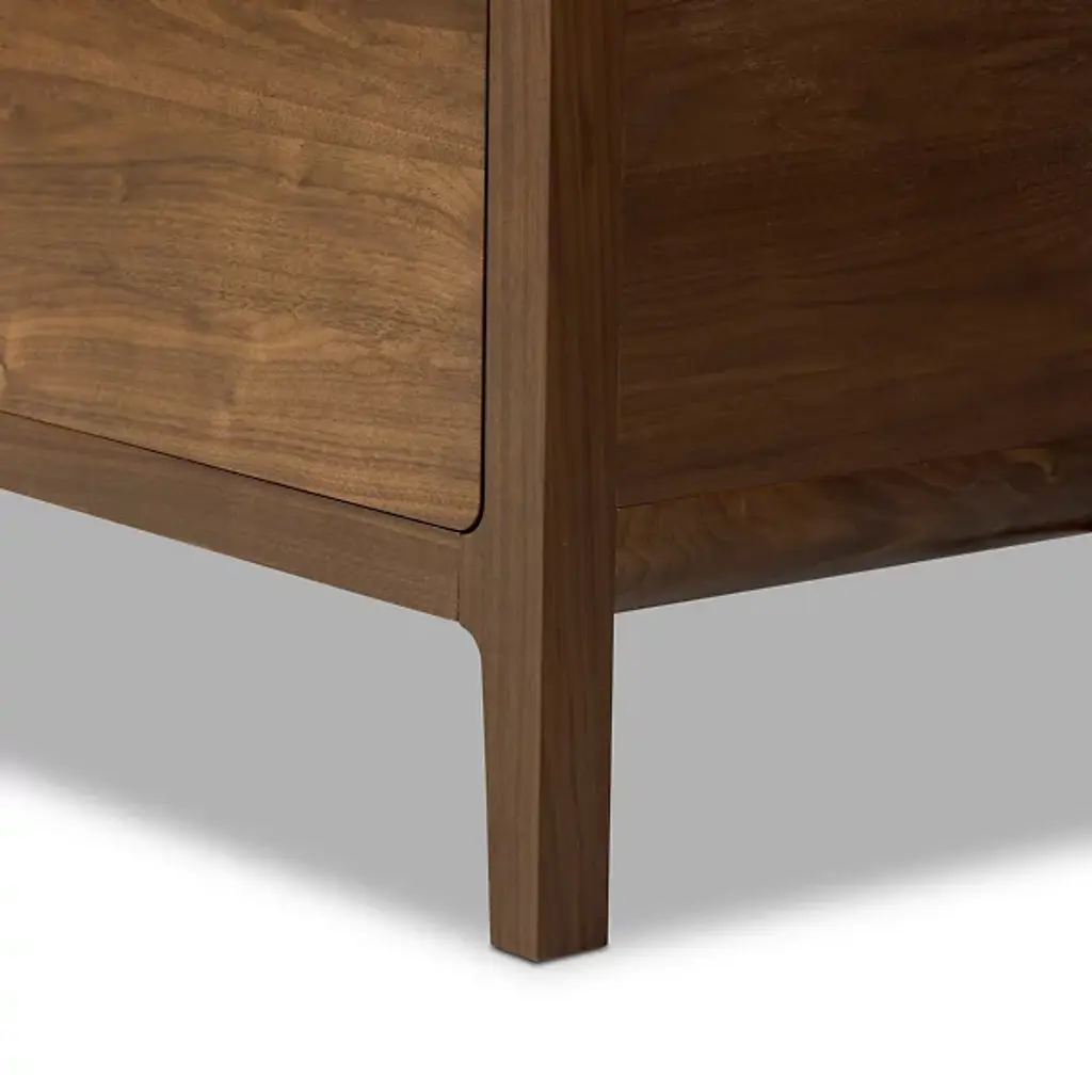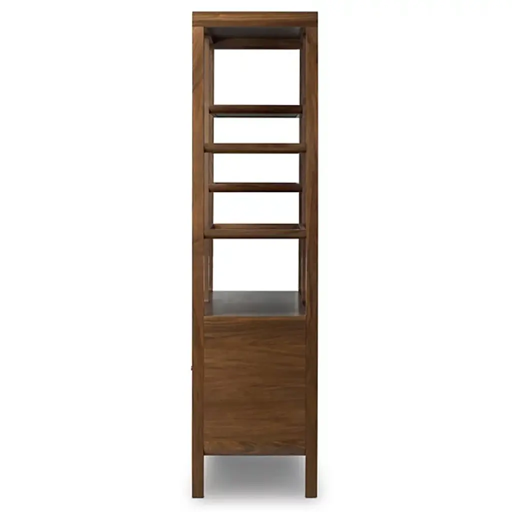 The Hawkes Bookcase from Four Hands rethinks storage with playfully offset shelves that create dynamic spaces for display. Crafted from solid walnut, the design balances open and closed storage compartments for versatile organization. Rounded corners and gently curved legs soften the overall appearance while maintaining the piece's strong presence. Each compartment becomes its own stage for books, photographs, or collected treasures. The thoughtful combination of concealed storage below and open shelving above offers practical solutions for organizing and showcasing personal items.