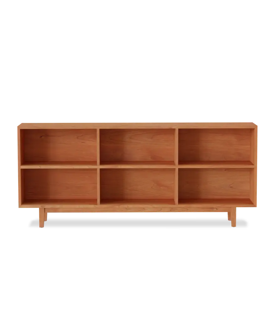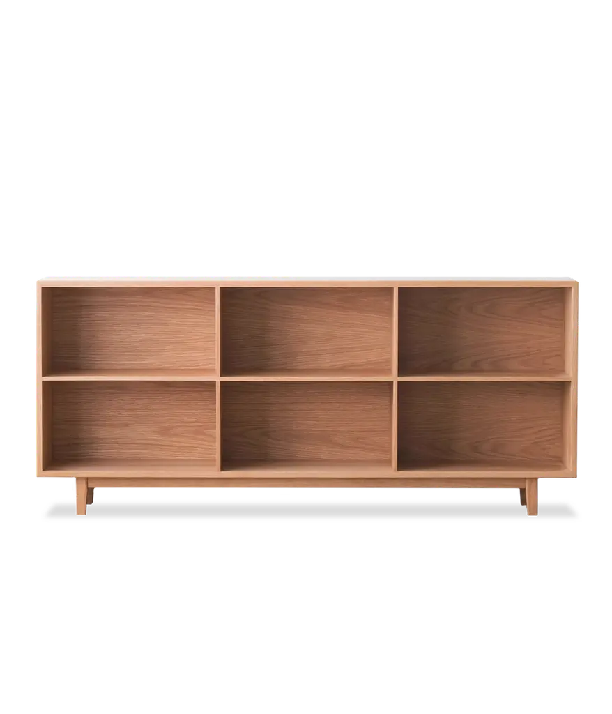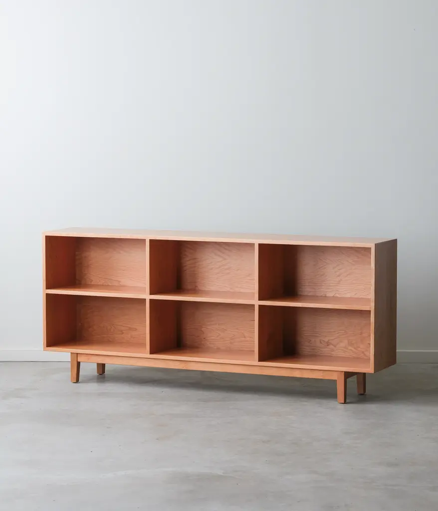 The Hayward Bookcase - Display your books and ceramics in style with this low profile bookcase. Built with a solid hardwood, mitered surround, fixed shelf and vertical dividers.