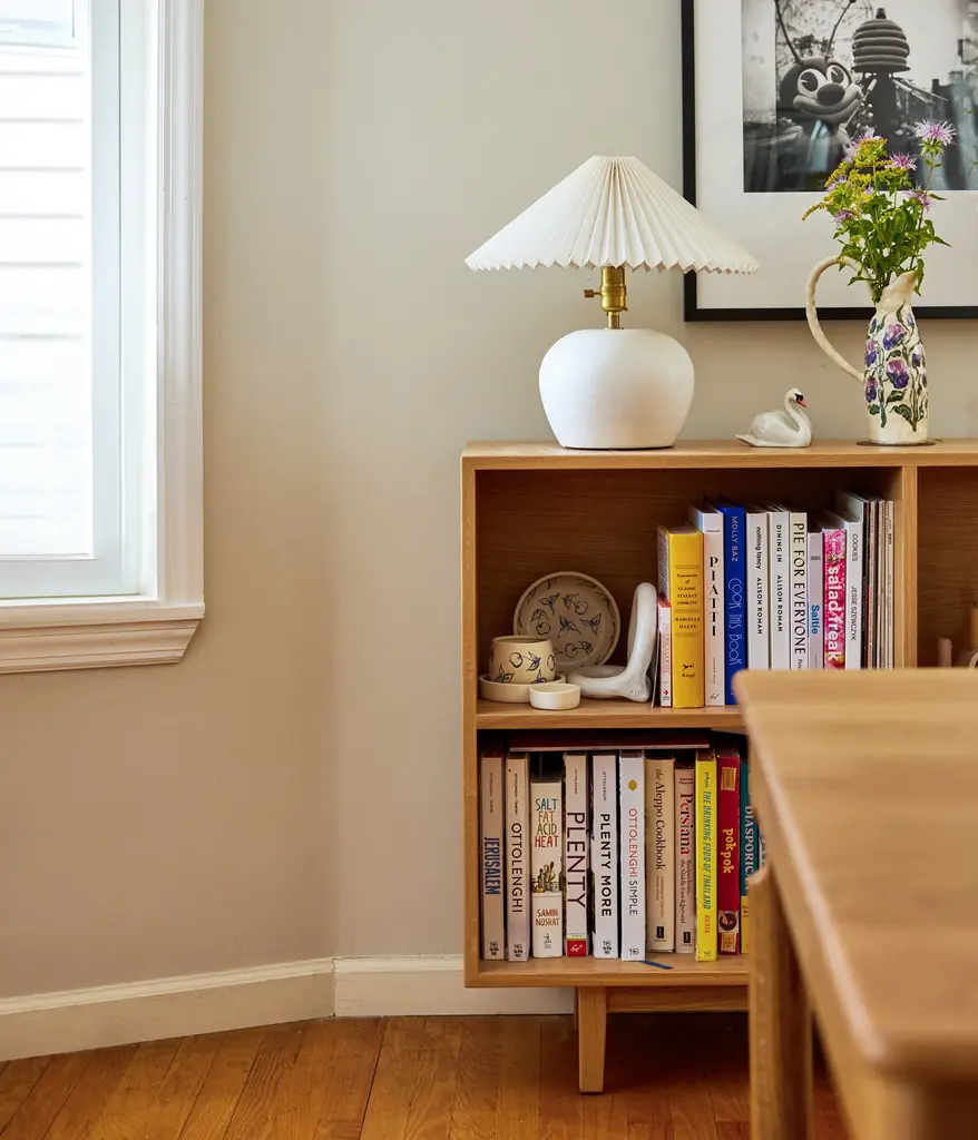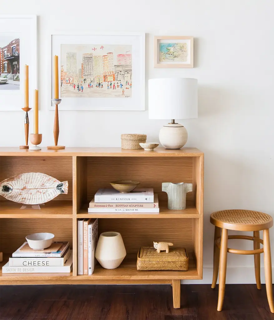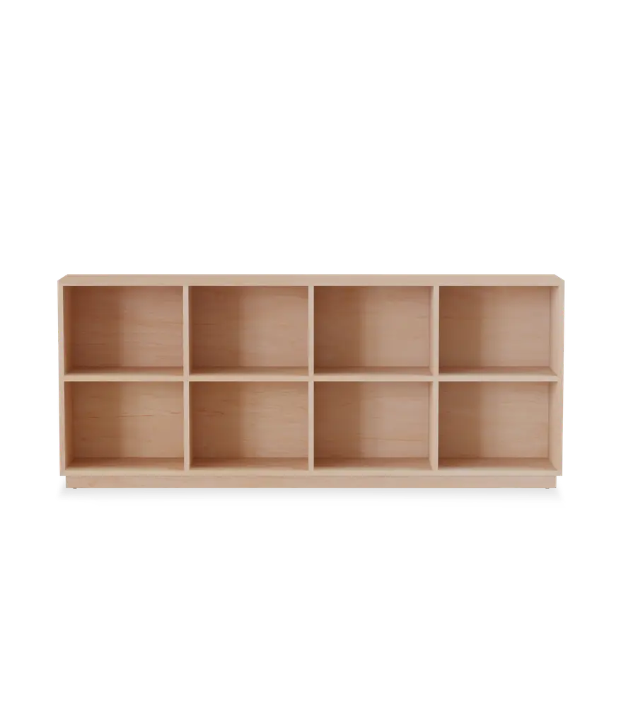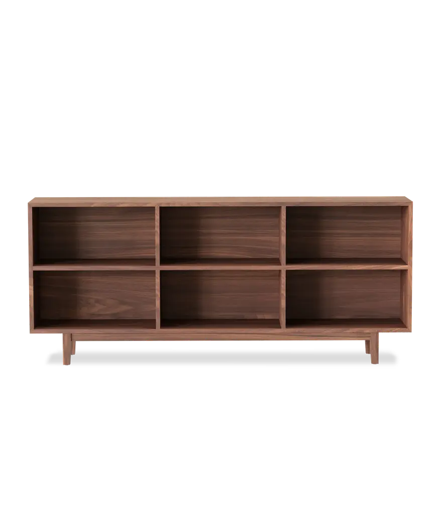 The Hayward Bookcase - Display your books and ceramics in style with this low profile bookcase. Built with a solid hardwood, mitered surround, fixed shelf and vertical dividers.