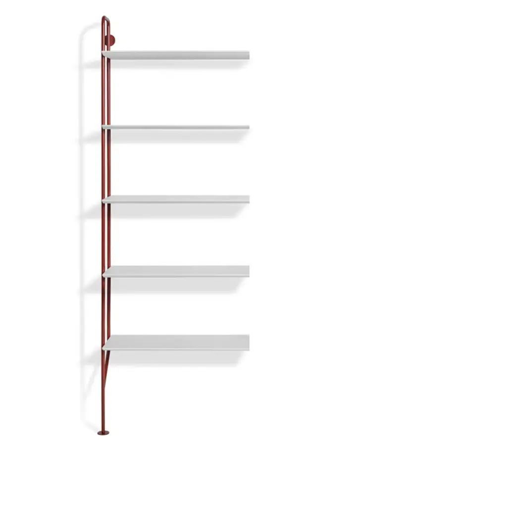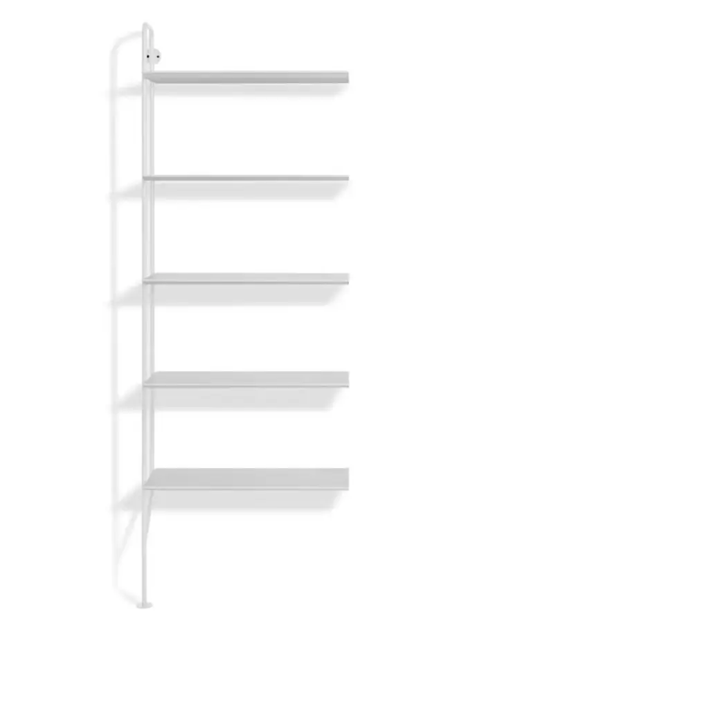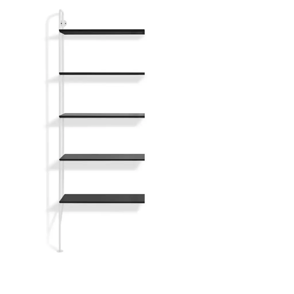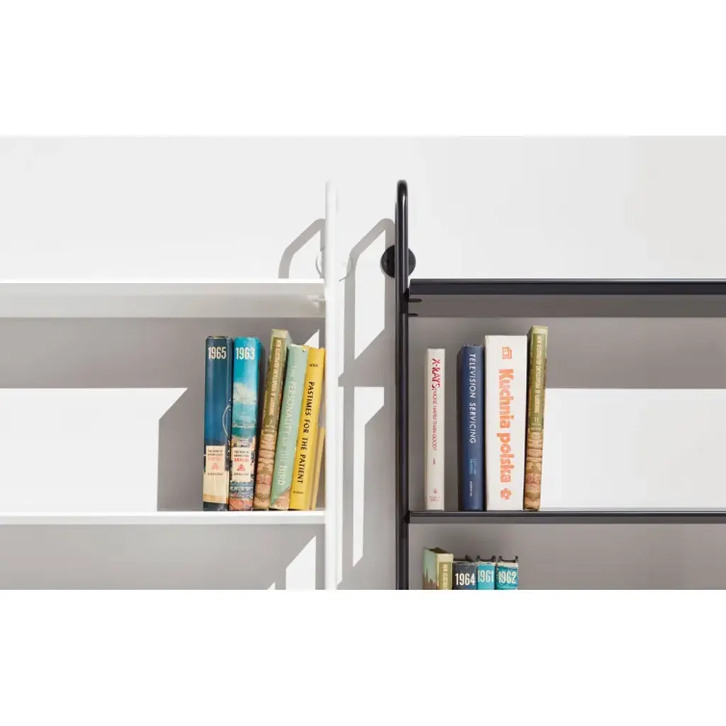 Powder-coated steel uprights and wood shelves make you the master of your bookcase destiny. Single units stand alone. Gang up multiples to create mass appeal with the Hitch Add-on Bookcase.