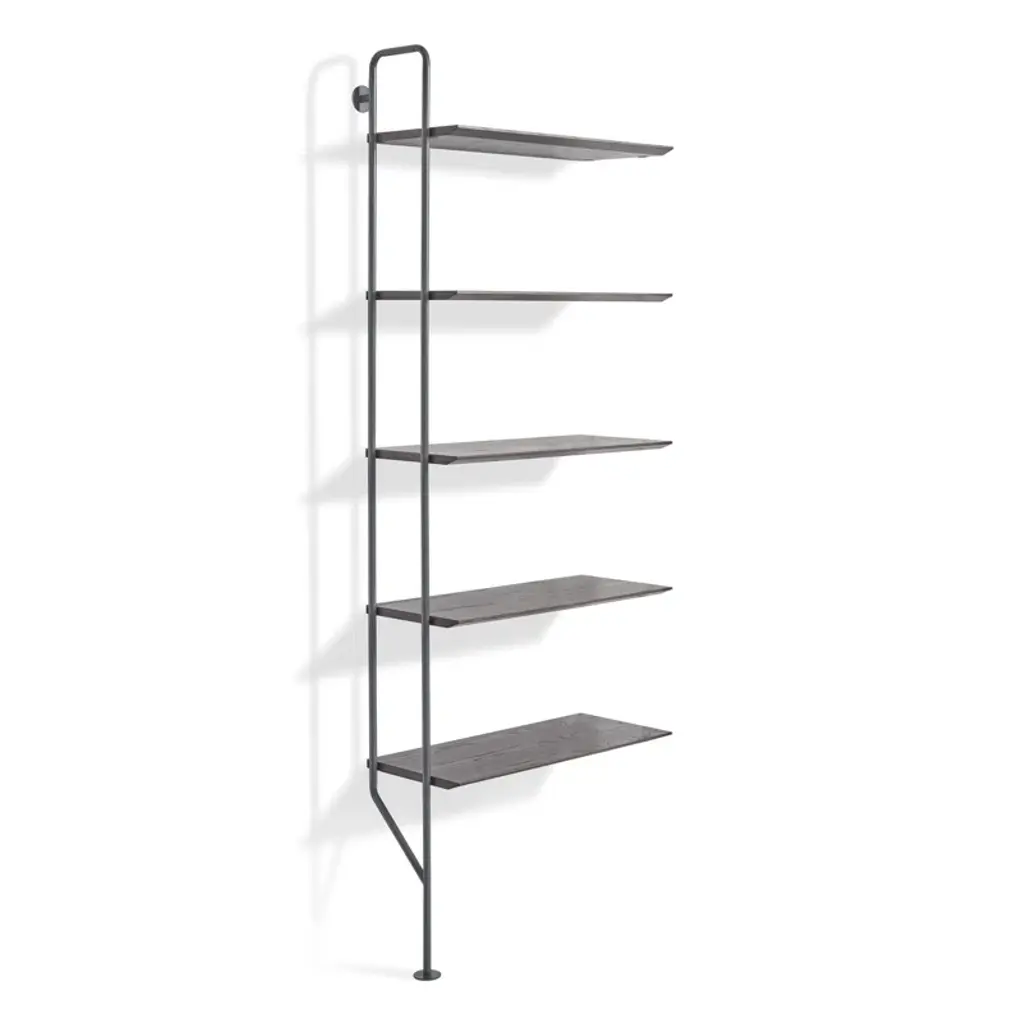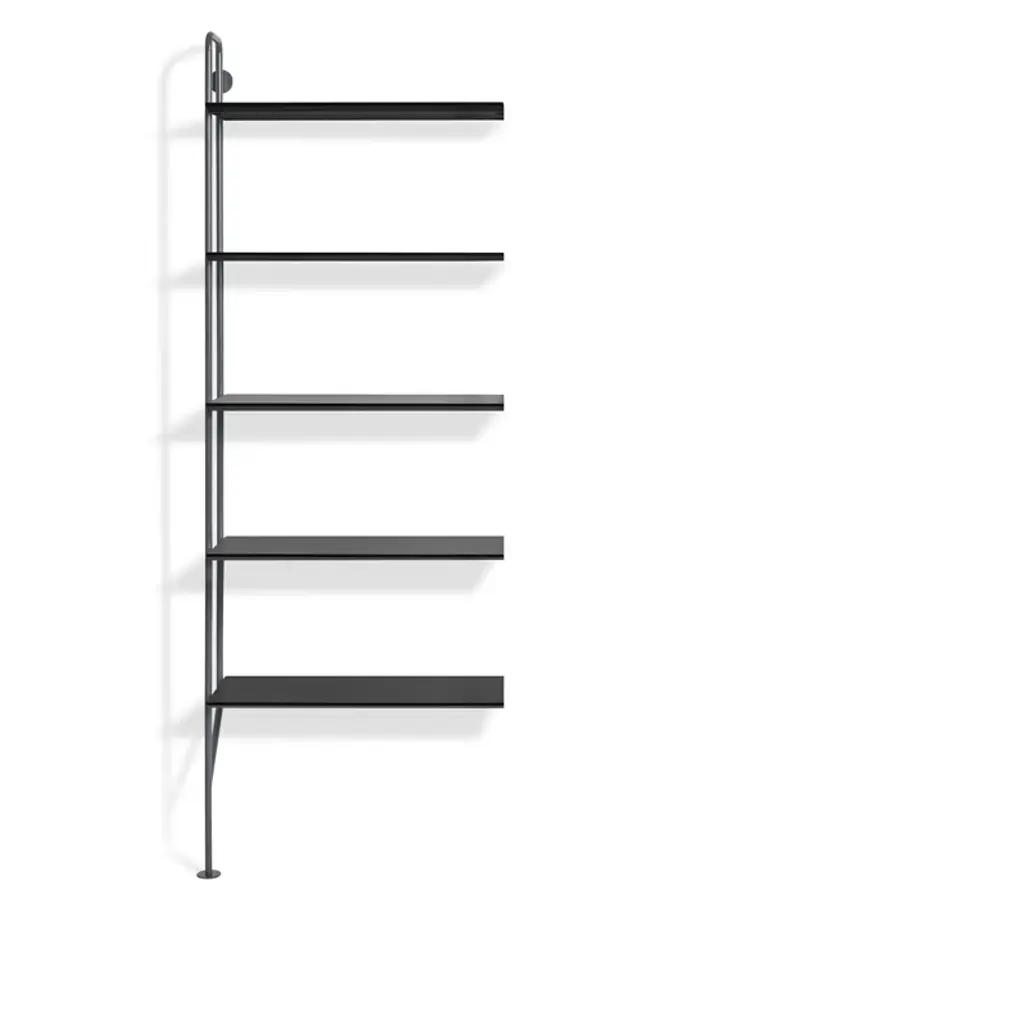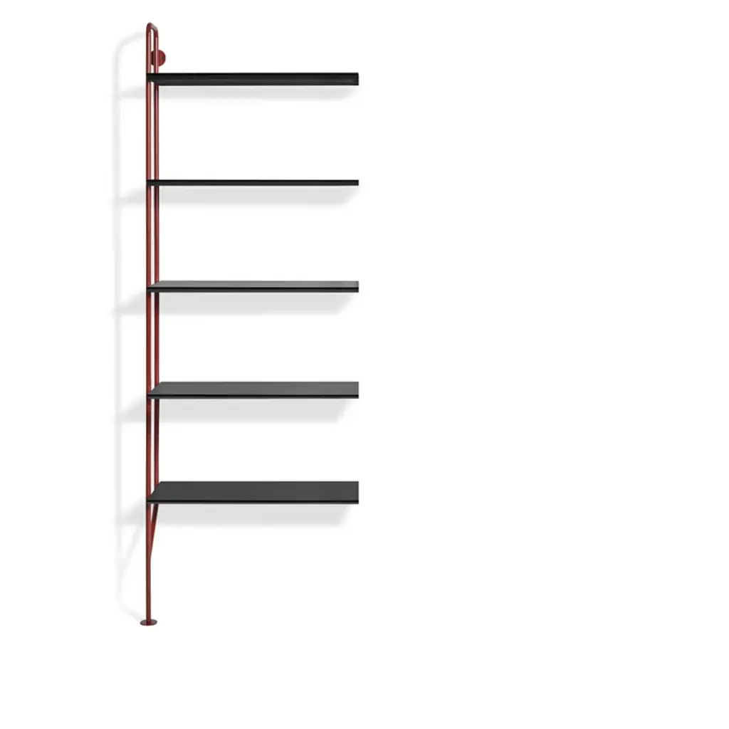 Powder-coated steel uprights and wood shelves make you the master of your bookcase destiny. Single units stand alone. Gang up multiples to create mass appeal with the Hitch Add-on Bookcase.