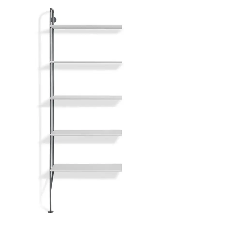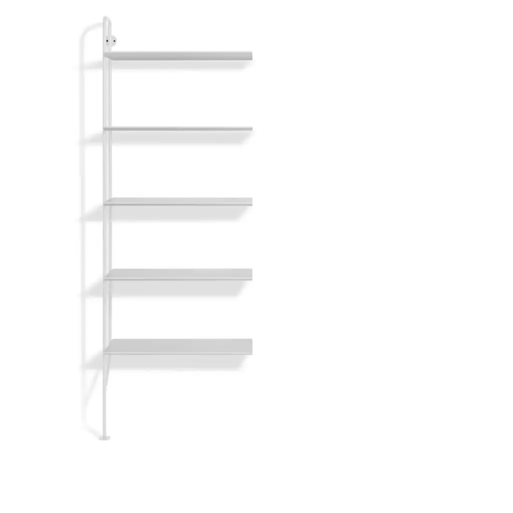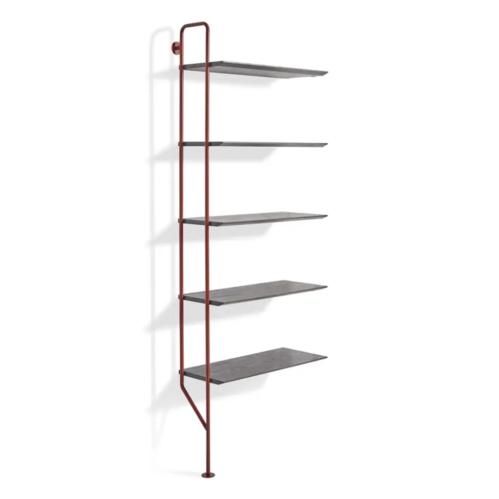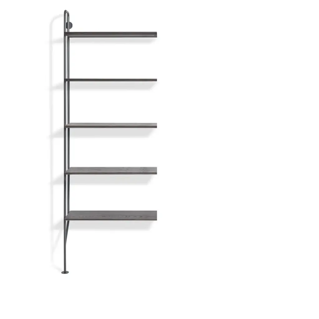 Powder-coated steel uprights and wood shelves make you the master of your bookcase destiny. Single units stand alone. Gang up multiples to create mass appeal with the Hitch Add-on Bookcase.