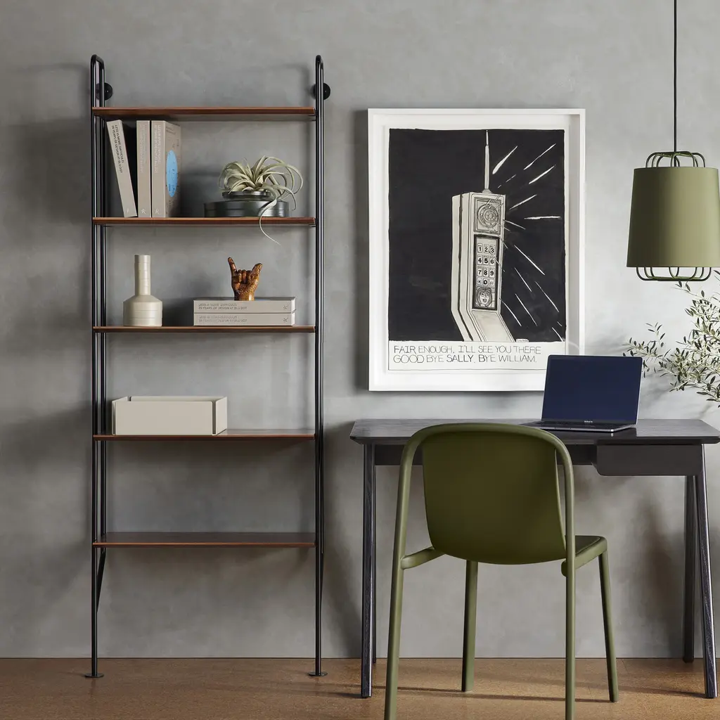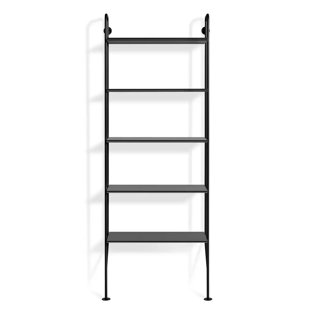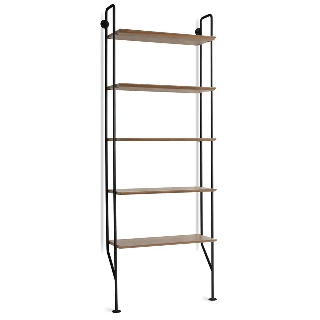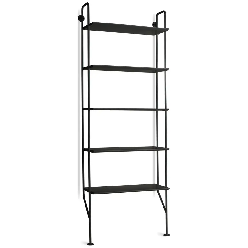 Bring a touch of industrial style to your favorite living and lounge spaces with the Hitch Bookcase from Blu Dot. Showcasing powder-coated steel construction, this vertical bookcase acts as an attractive storage piece whether as a single unit, or as part of a larger grouping with additional Hitch Collection pieces. The vertical steel supports and engineered wood shelves offer plenty of support and space to store books, decor, or favorite electronics. Highlights