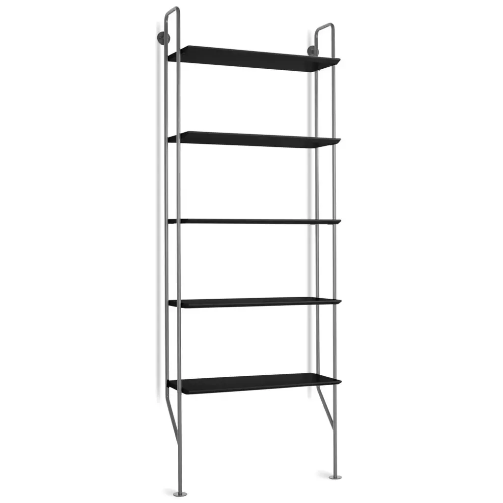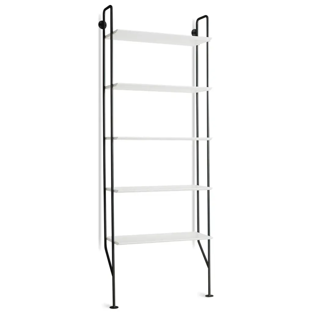 Bring a touch of industrial style to your favorite living and lounge spaces with the Hitch Bookcase from Blu Dot. Showcasing powder-coated steel construction, this vertical bookcase acts as an attractive storage piece whether as a single unit, or as part of a larger grouping with additional Hitch Collection pieces. The vertical steel supports and engineered wood shelves offer plenty of support and space to store books, decor, or favorite electronics. Highlights