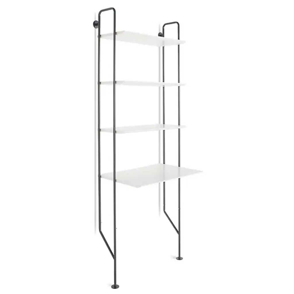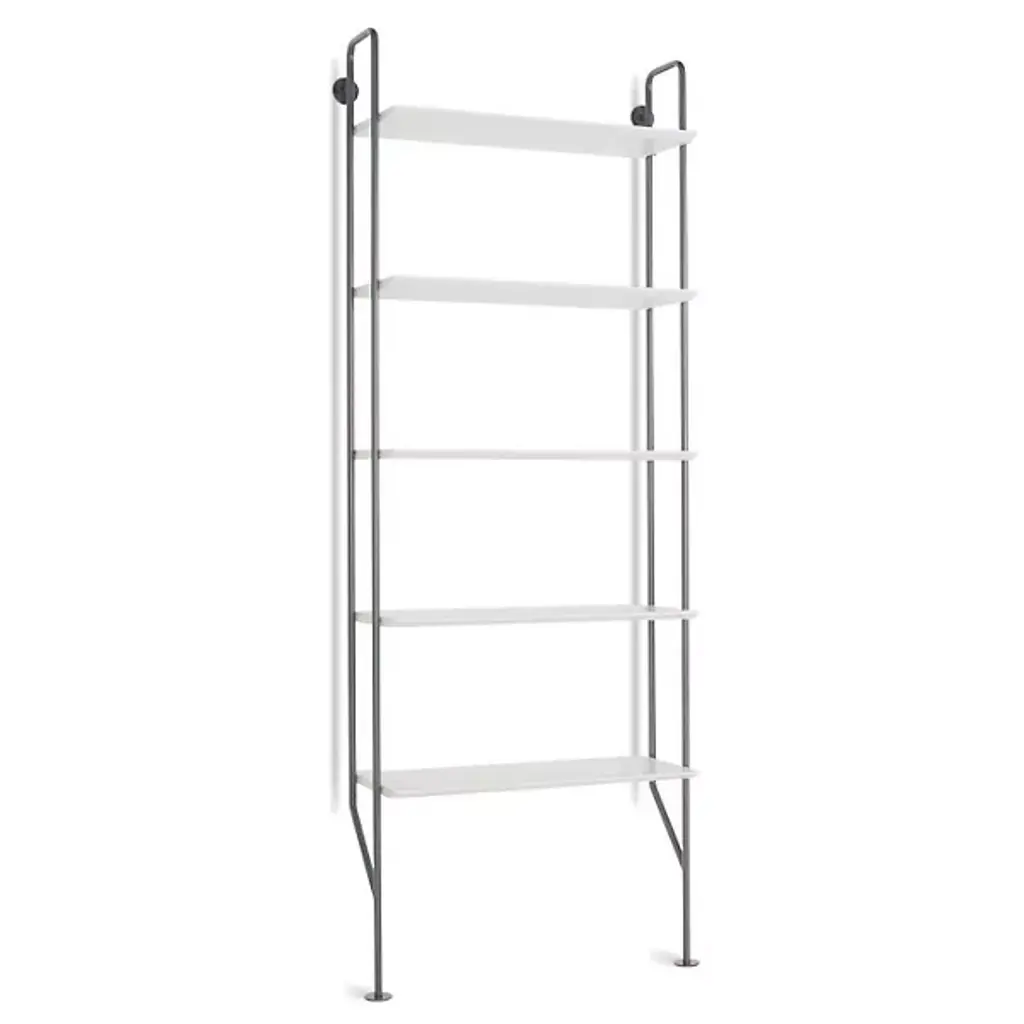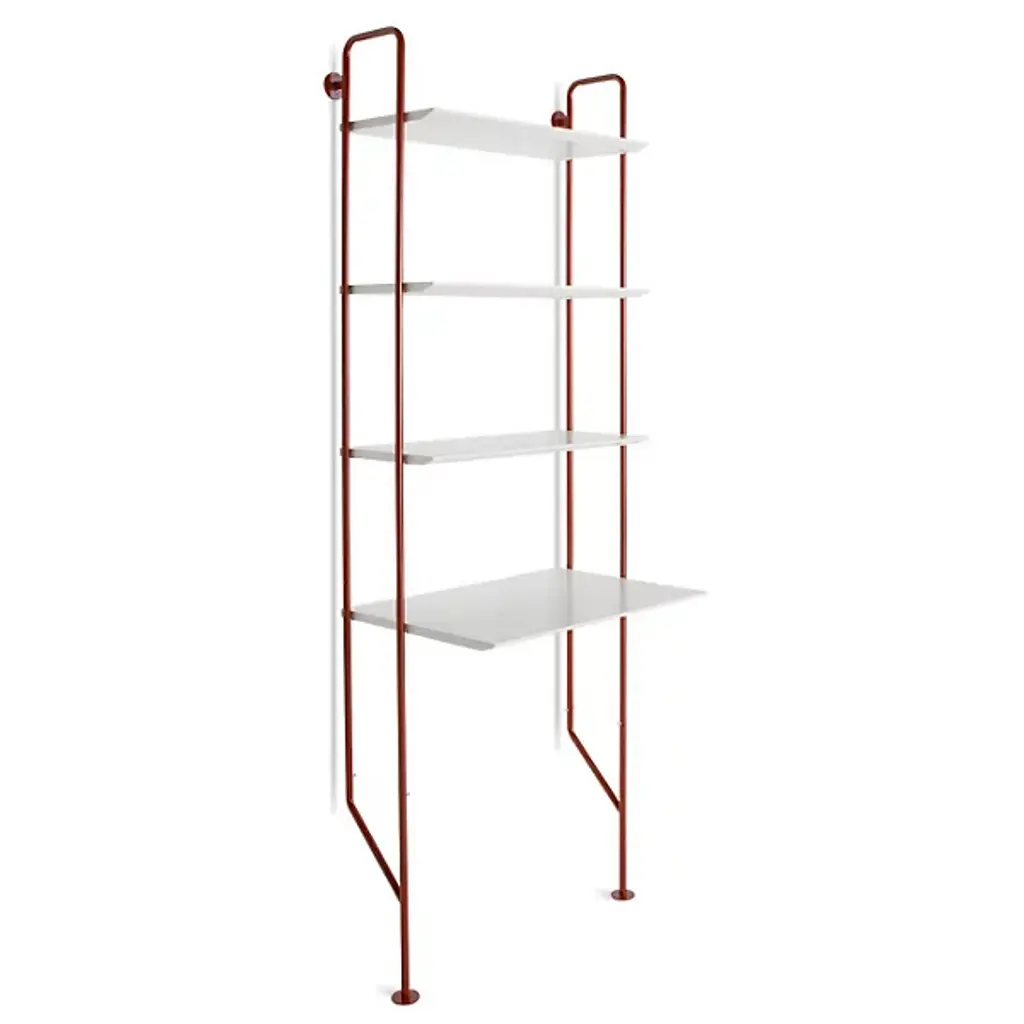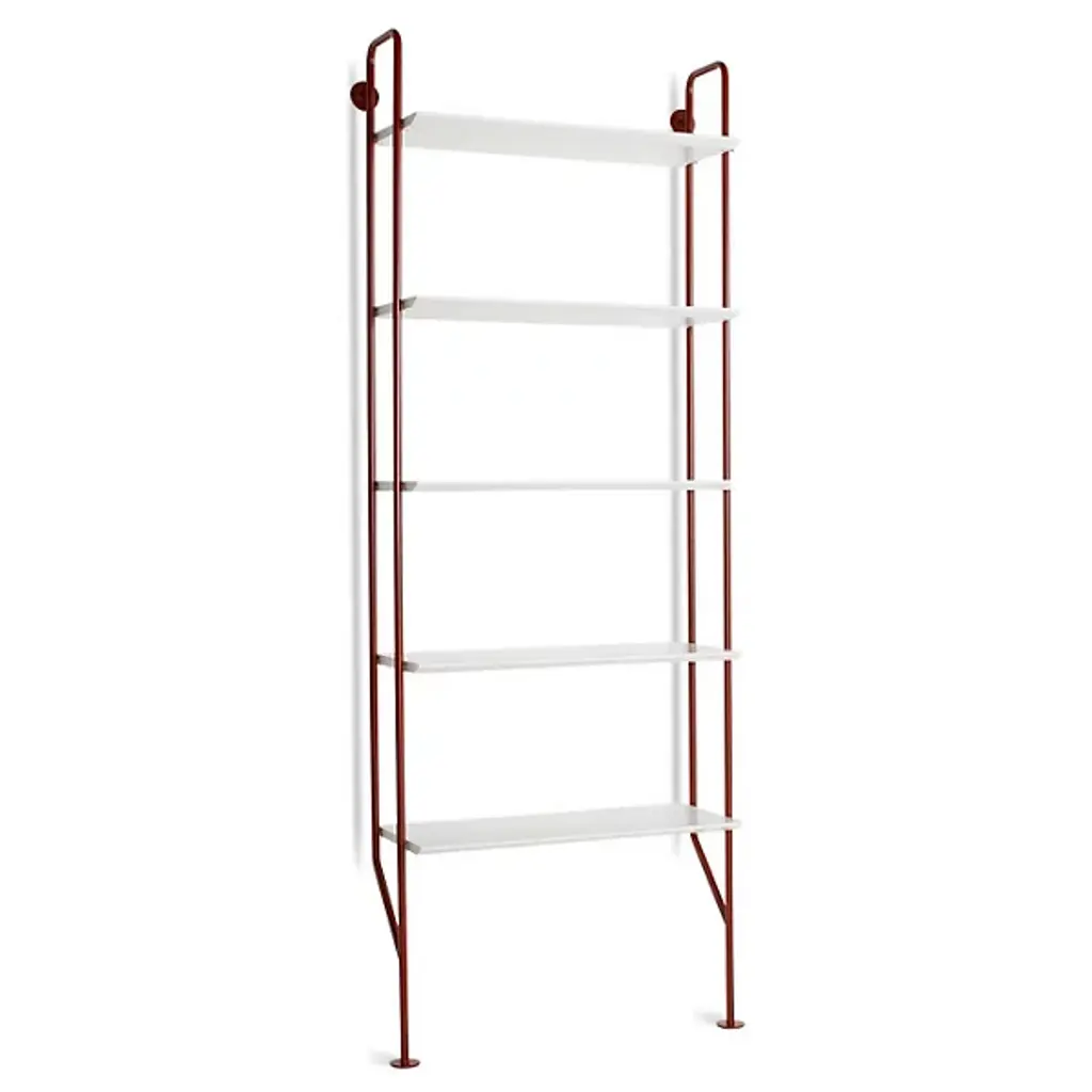 Become the master of your bookcase destiny with the Blu Dot Hitch Bookcase. This industrial style bookcase features powder coated steel uprights that sit on the floor and secure to the wall on top. Mix and match the various finishes with either available shelf color. While lovely as a standalone piece, Hitch can also be enlarged with either the Hitch Add-On Bookcase or Hitch Add-On Bookcase and Desk.
