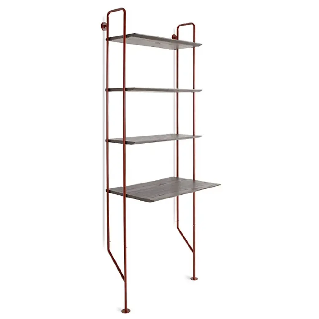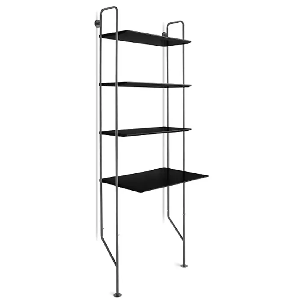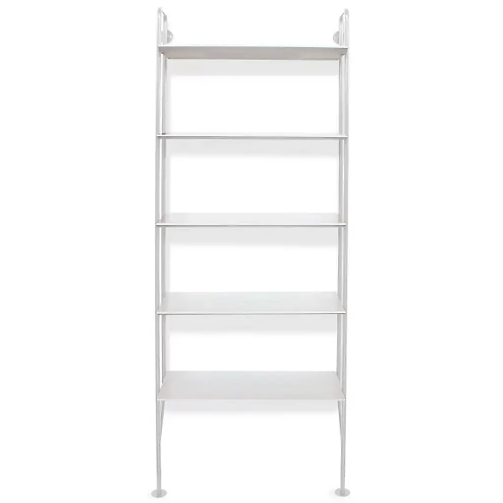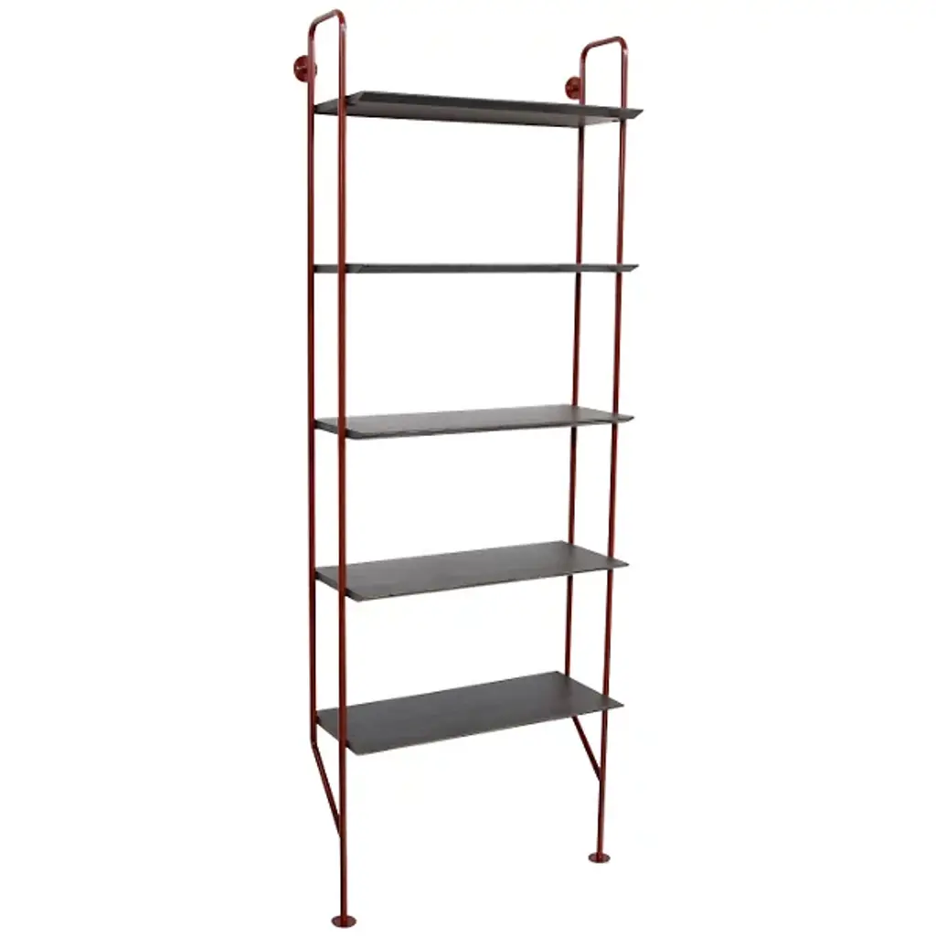 Become the master of your bookcase destiny with the Blu Dot Hitch Bookcase. This industrial style bookcase features powder coated steel uprights that sit on the floor and secure to the wall on top. Mix and match the various finishes with either available shelf color. While lovely as a standalone piece, Hitch can also be enlarged with either the Hitch Add-On Bookcase or Hitch Add-On Bookcase and Desk.