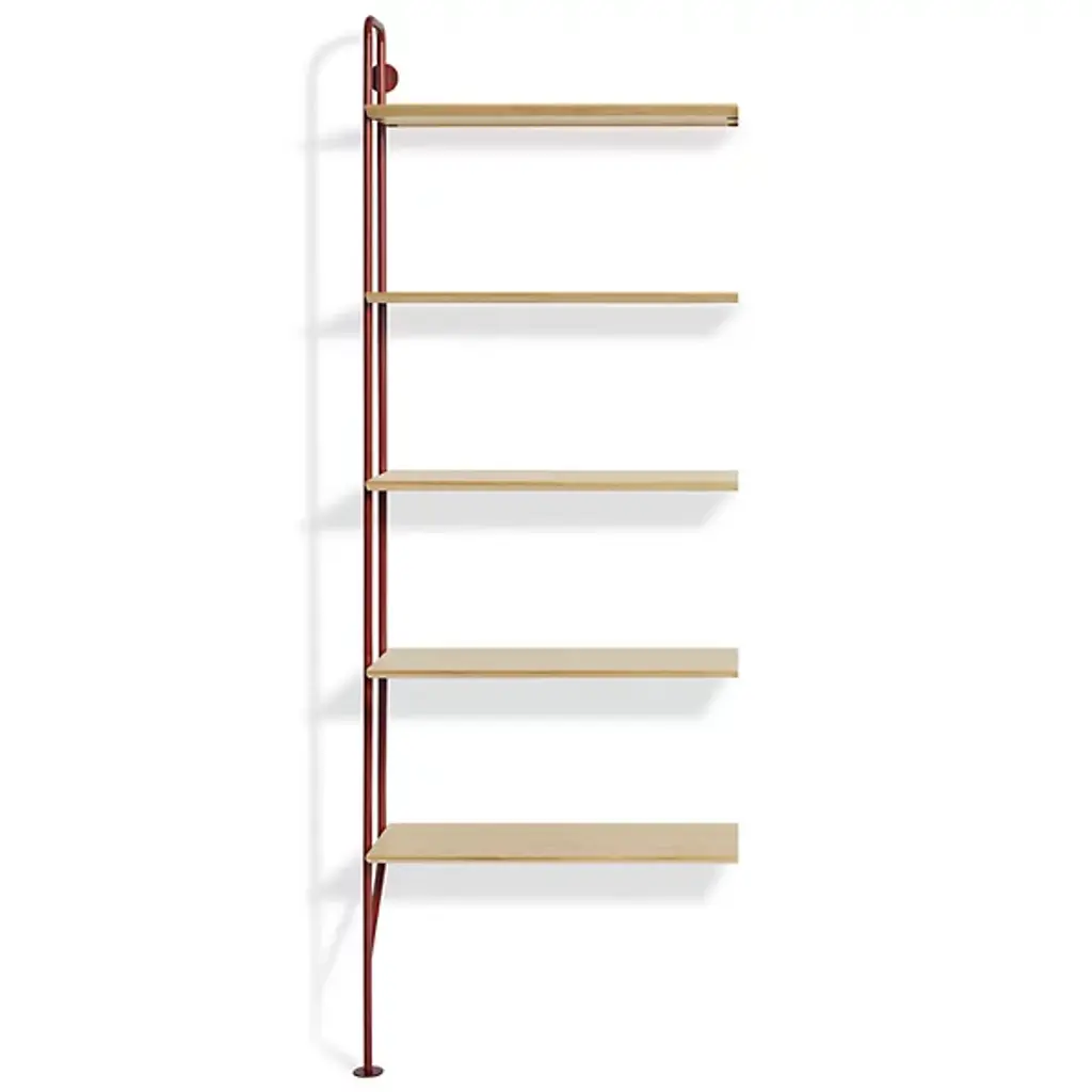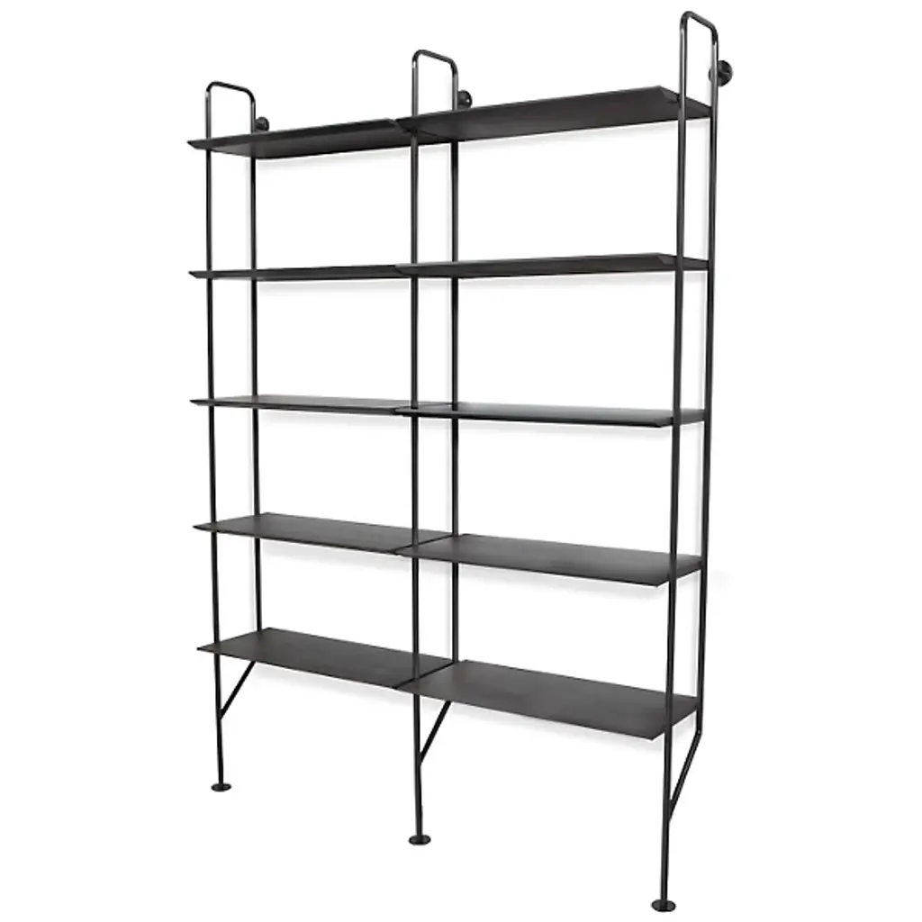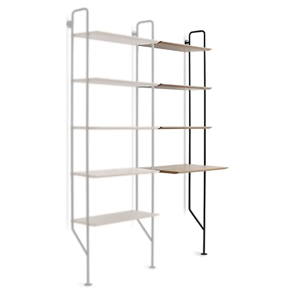 Gang up on your walls with the Blu Dot Hitch Bookcase Extensions. This unit attaches to the standalone Hitch Bookcase or Hitch Bookcase & Desk for even more industrial style and storage. This supplemental unit includes one powder coated steel upright and five engineered wood substrate shelves that line up perfectly with those of the base unit.