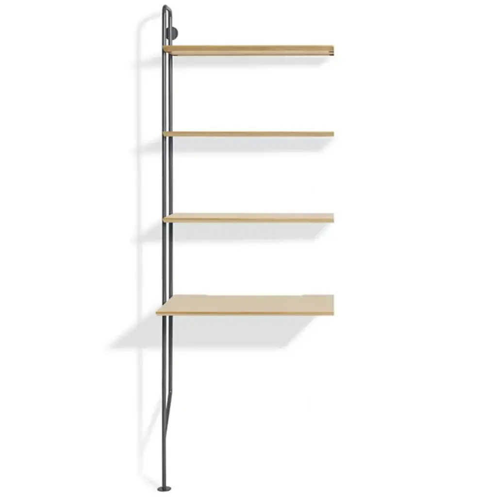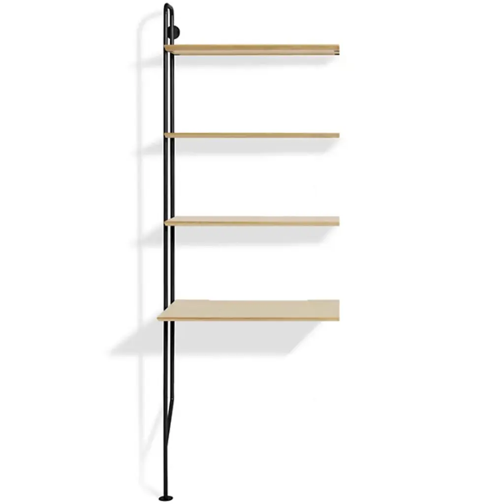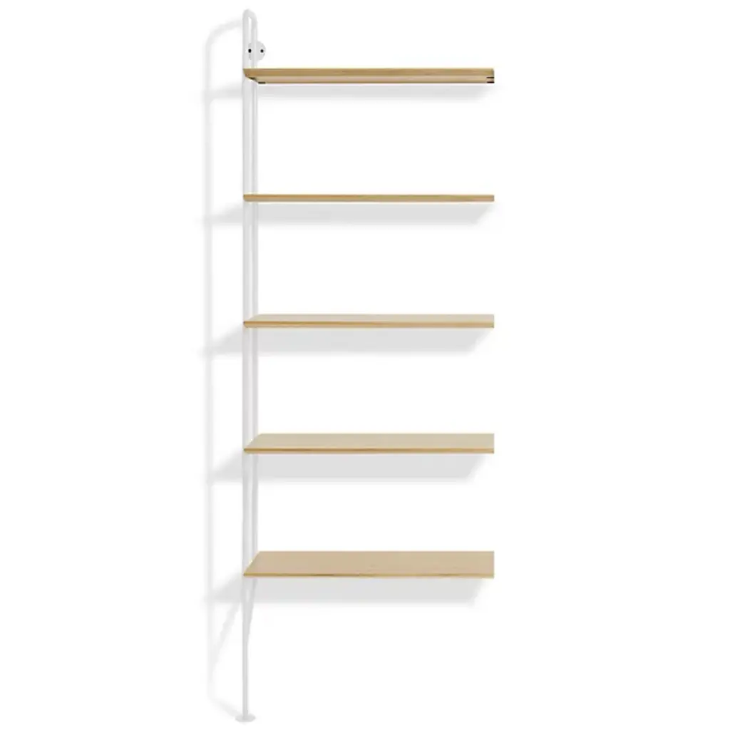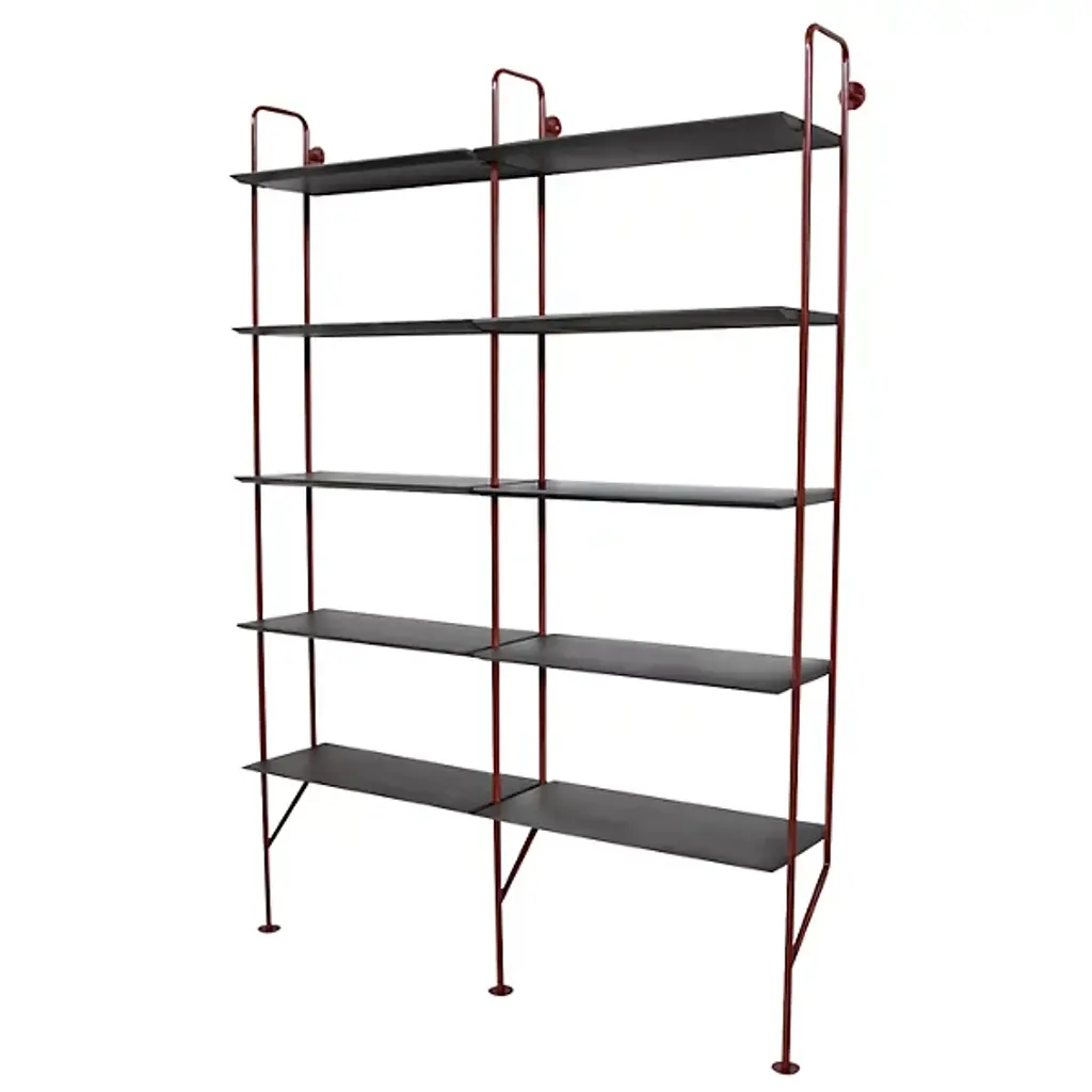 Gang up on your walls with the Blu Dot Hitch Bookcase Extensions. This unit attaches to the standalone Hitch Bookcase or Hitch Bookcase & Desk for even more industrial style and storage. This supplemental unit includes one powder coated steel upright and five engineered wood substrate shelves that line up perfectly with those of the base unit.