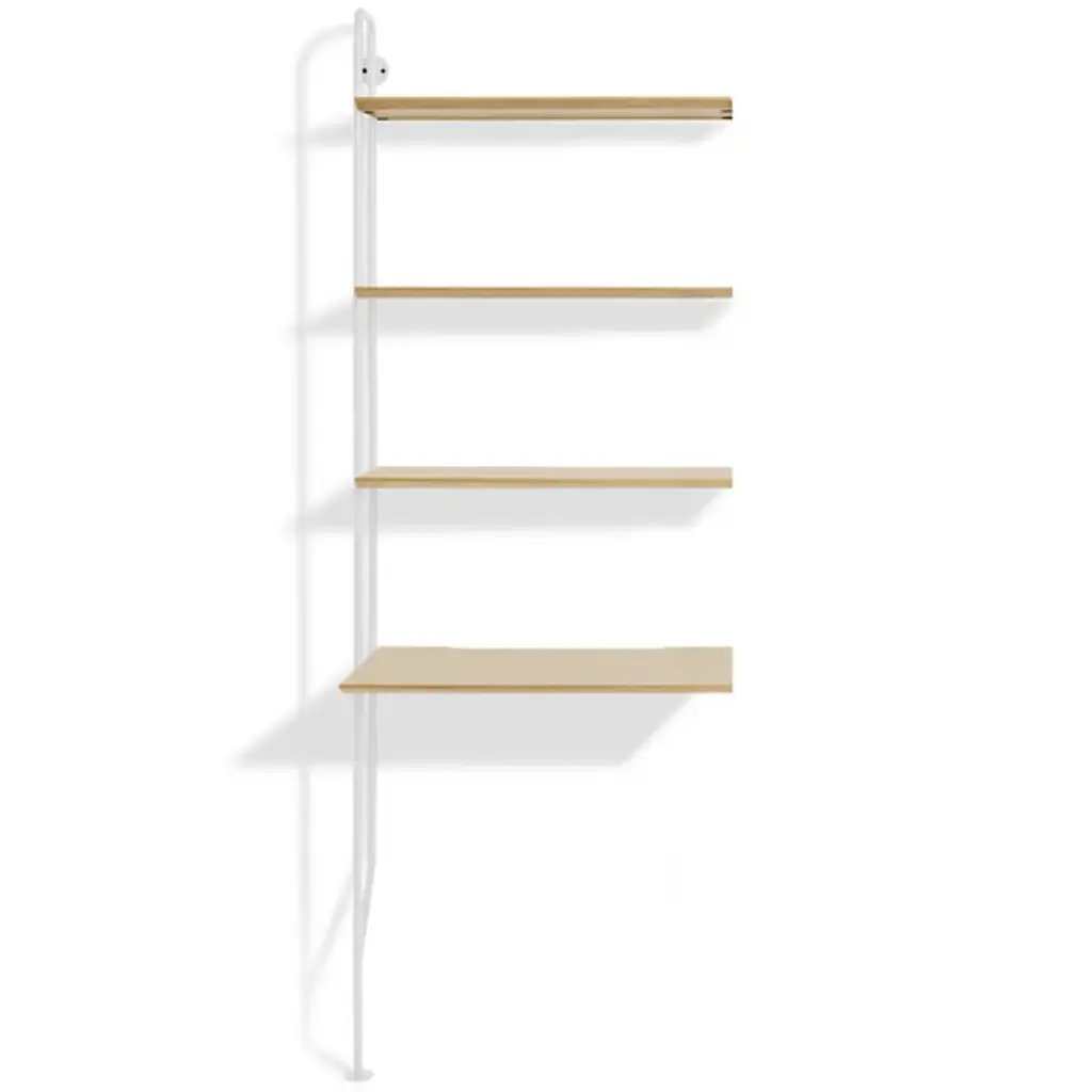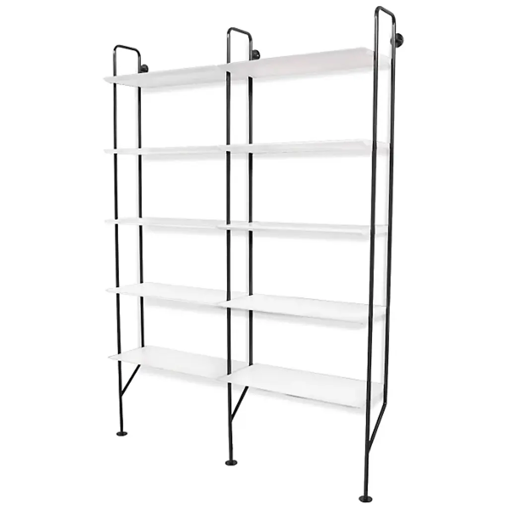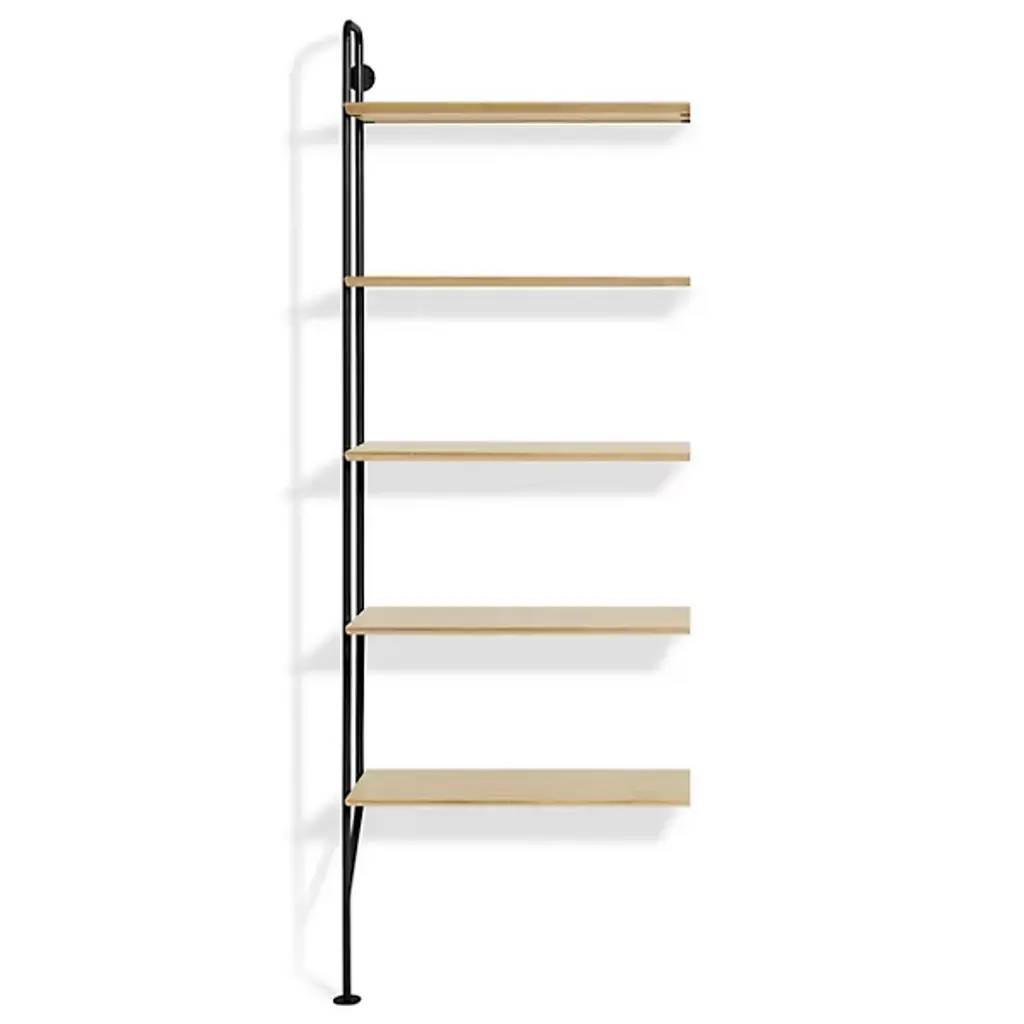 Gang up on your walls with the Blu Dot Hitch Bookcase Extensions. This unit attaches to the standalone Hitch Bookcase or Hitch Bookcase & Desk for even more industrial style and storage. This supplemental unit includes one powder coated steel upright and five engineered wood substrate shelves that line up perfectly with those of the base unit.