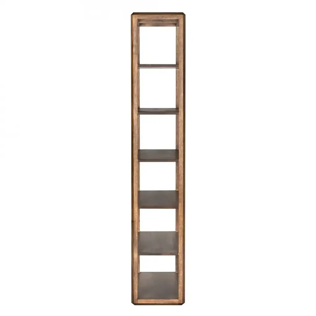The Idris Bookcase offers a sleek and modern design with the rich elegance of dark walnut. Its spacious 36”W x 16”D shelves provide ample storage, while the clean lines and sophisticated finish make it a striking addition to any room.