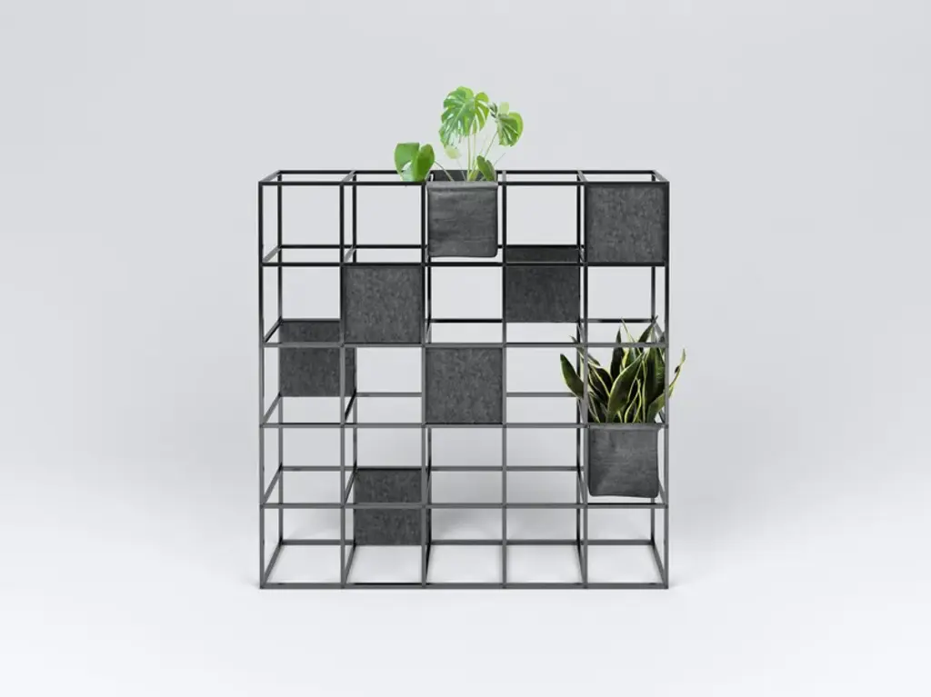 iPot is a modular system that can take unlimited forms.Its modular structure provides an extraordinary compositional and functional flexibility. You can build it up as a partition wall, an indoor or outdoor 'green island', a bookcase, a display stand and more, thanks to a variety of accessories.Perfect and adjustable to fit in any space, from the smallest element hosting a single pot to the most complex configurations. iPot is the unique solution that best meets your needs!The iPot Kits are a selection of configurations composed of structure + accessories. For each kit it's possible to customize: . structure color . accessories materials and colors