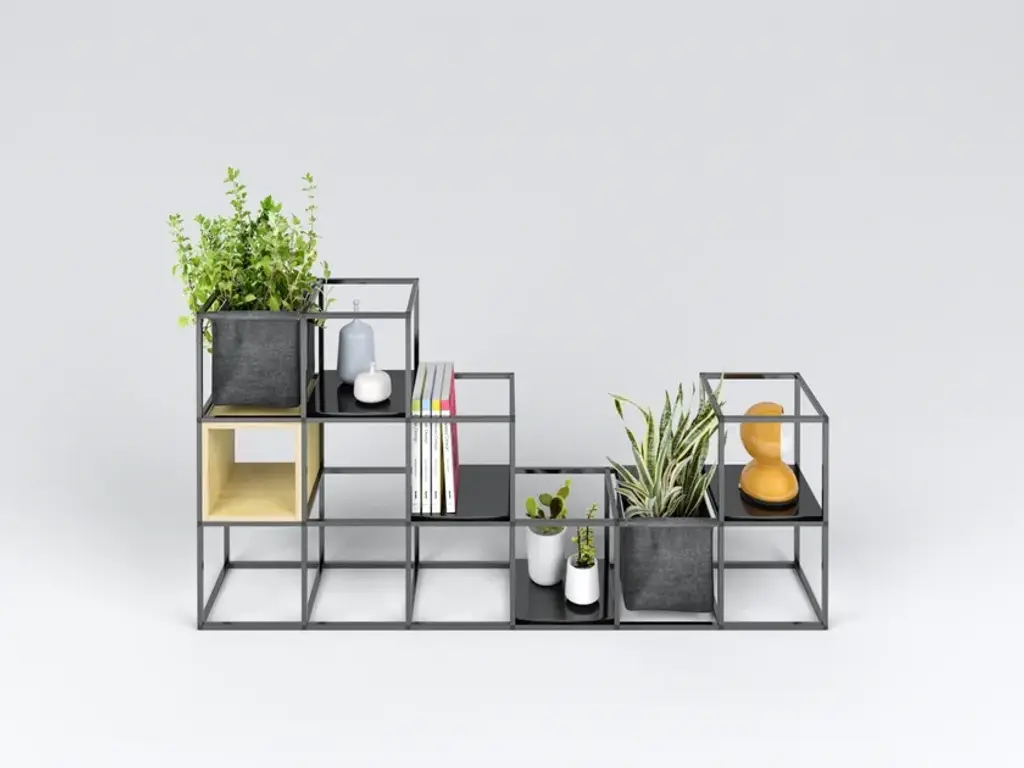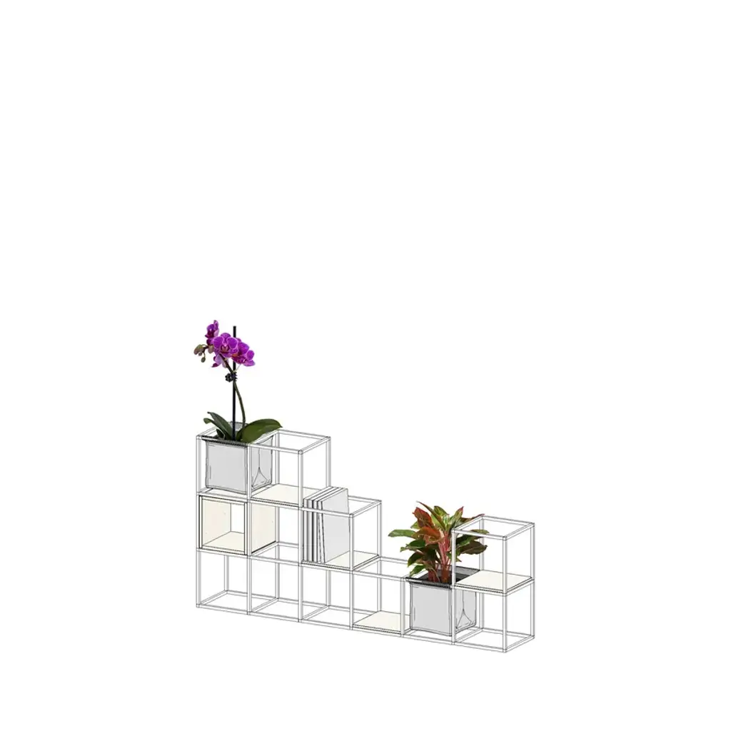 iPot is a modular system that can take unlimited forms.Its modular structure provides an extraordinary compositional and functional flexibility. You can build it up as a partition wall, an indoor or outdoor 'green island', a bookcase, a display stand and more, thanks to a variety of accessories.Perfect and adjustable to fit in any space, from the smallest element hosting a single pot to the most complex configurations. iPot is the unique solution that best meets your needs!The iPot Kits are a selection of configurations composed of structure + accessories. For each kit it's possible to customize: . structure color . accessories materials and colors