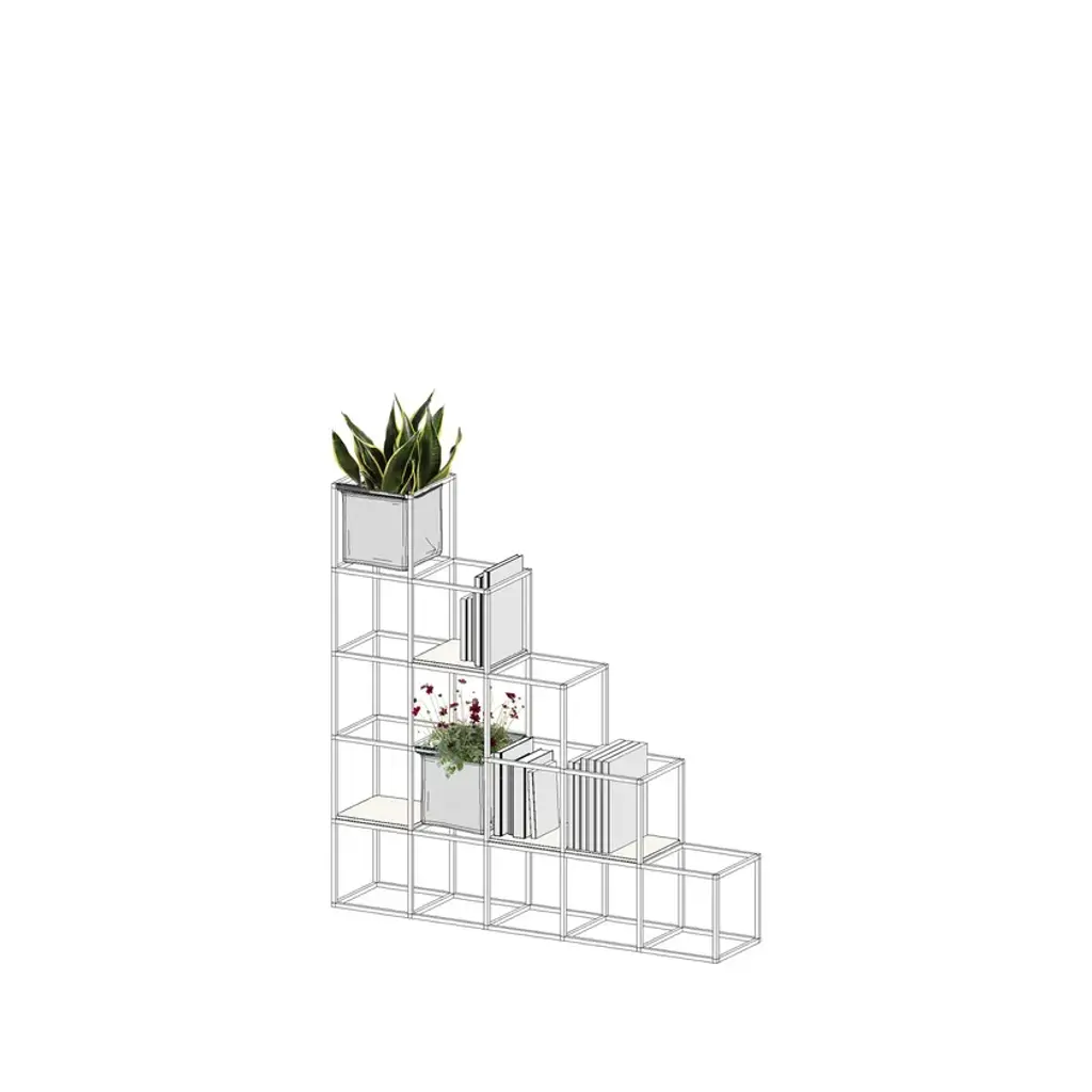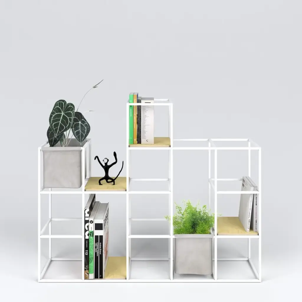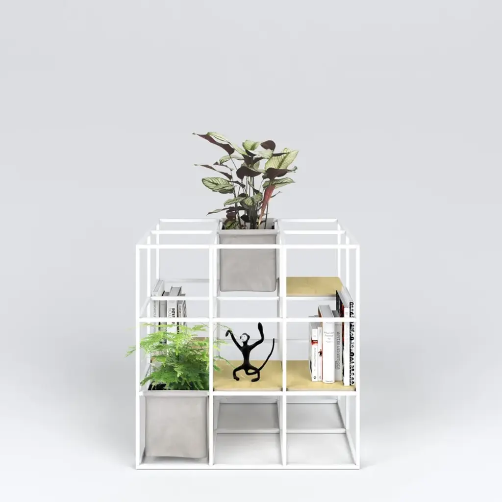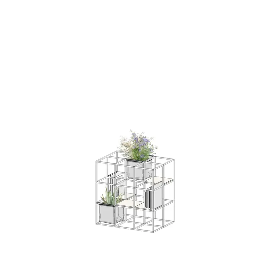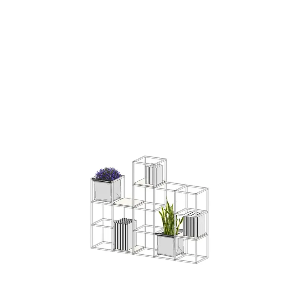 iPot is a modular system that can take unlimited forms.Its modular structure provides an extraordinary compositional and functional flexibility. You can build it up as a partition wall, an indoor or outdoor 'green island', a bookcase, a display stand and more, thanks to a variety of accessories.Perfect and adjustable to fit in any space, from the smallest element hosting a single pot to the most complex configurations. iPot is the unique solution that best meets your needs!The iPot Kits are a selection of configurations composed of structure + accessories. For each kit it's possible to customize: . structure color . accessories materials and colors