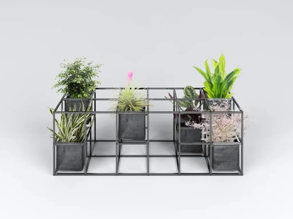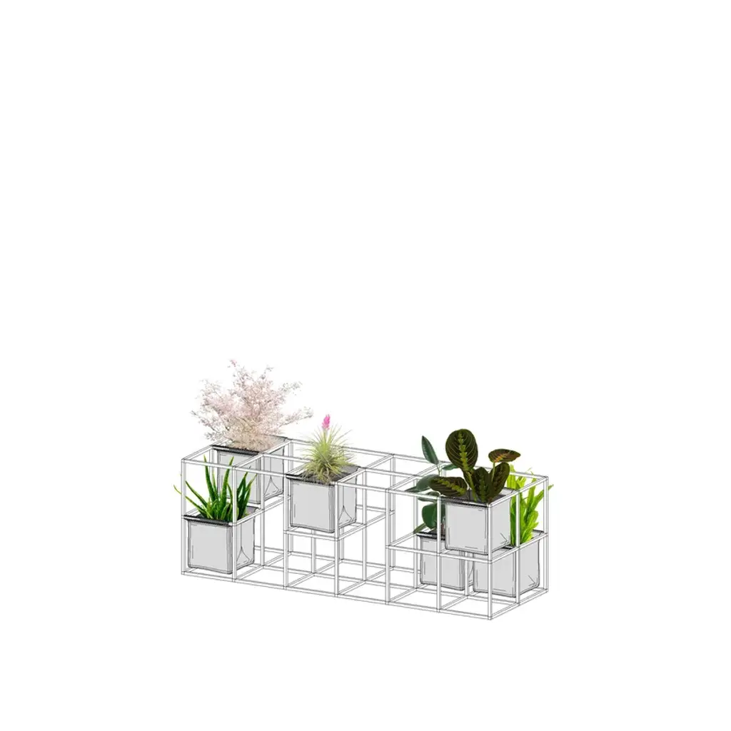 iPot is a modular system that can take unlimited forms.Its modular structure provides an extraordinary compositional and functional flexibility. You can build it up as a partition wall, an indoor or outdoor 'green island', a bookcase, a display stand and more, thanks to a variety of accessories.Perfect and adjustable to fit in any space, from the smallest element hosting a single pot to the most complex configurations. iPot is the unique solution that best meets your needs!The iPot Kits are a selection of configurations composed of structure + accessories. For each kit it's possible to customize: . structure color . accessories materials and colors