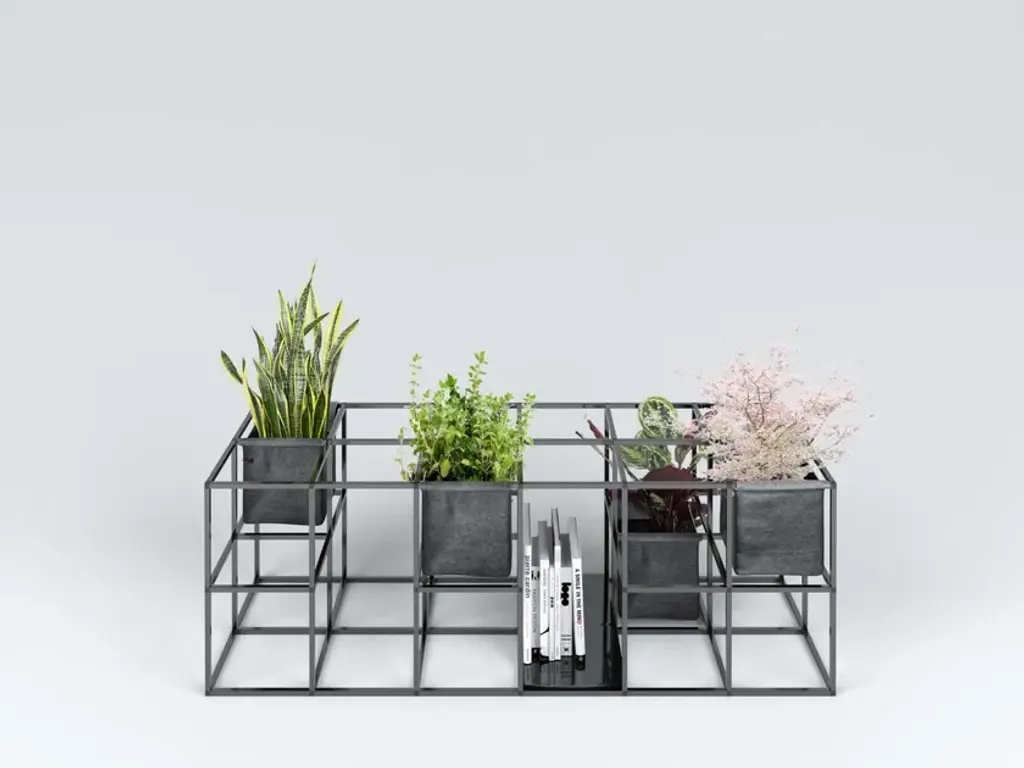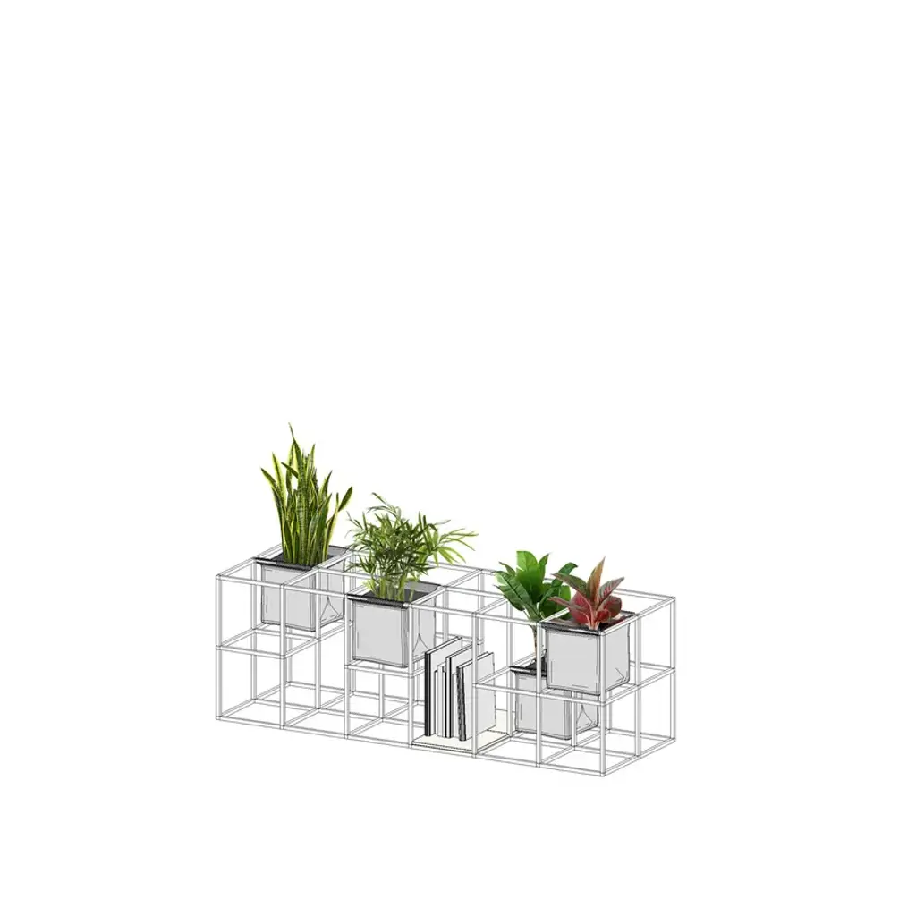 iPot is a modular system that can take unlimited forms.Its modular structure provides an extraordinary compositional and functional flexibility. You can build it up as a partition wall, an indoor or outdoor 'green island', a bookcase, a display stand and more, thanks to a variety of accessories.Perfect and adjustable to fit in any space, from the smallest element hosting a single pot to the most complex configurations. iPot is the unique solution that best meets your needs!The iPot Kits are a selection of configurations composed of structure + accessories. For each kit it's possible to customize: . structure color . accessories materials and colors