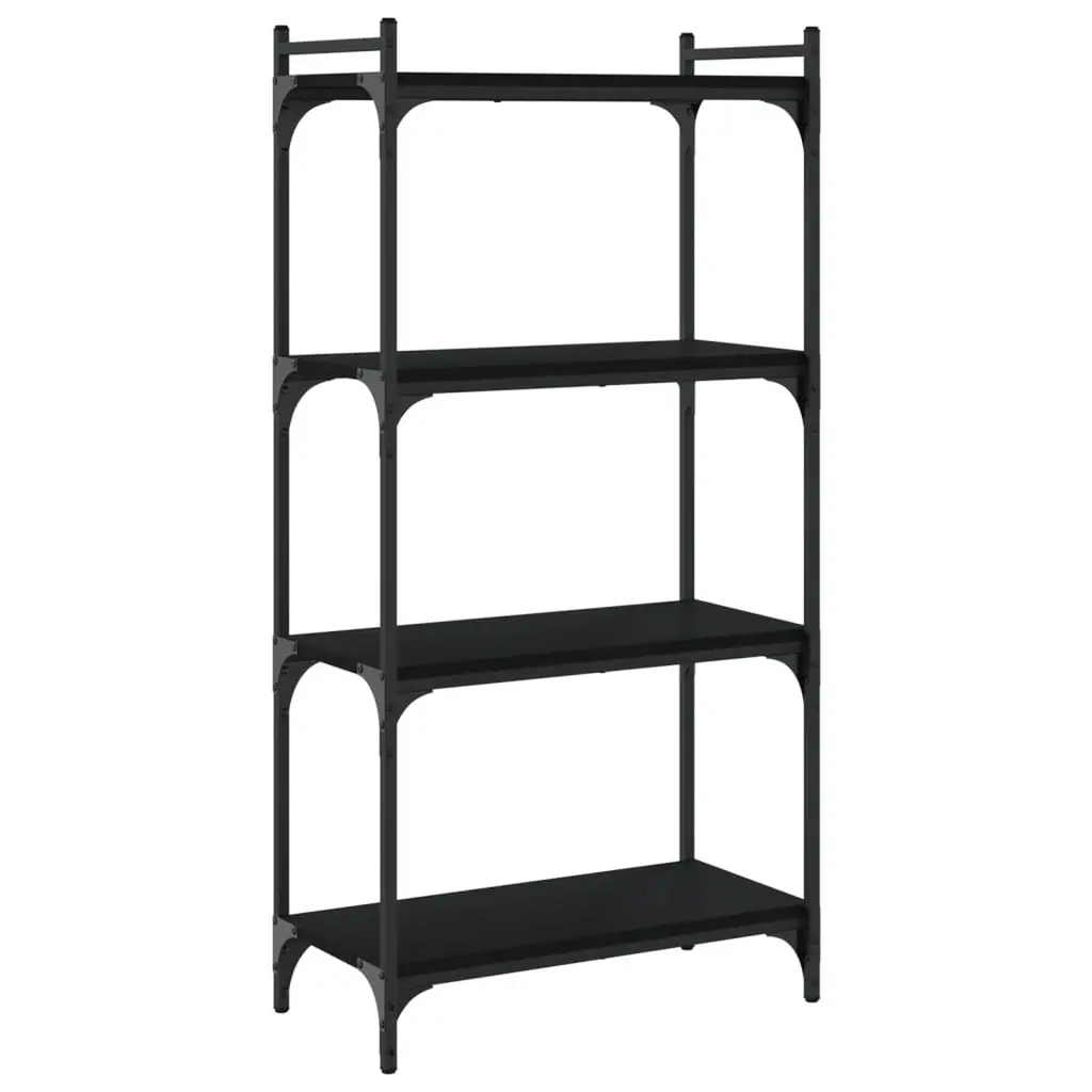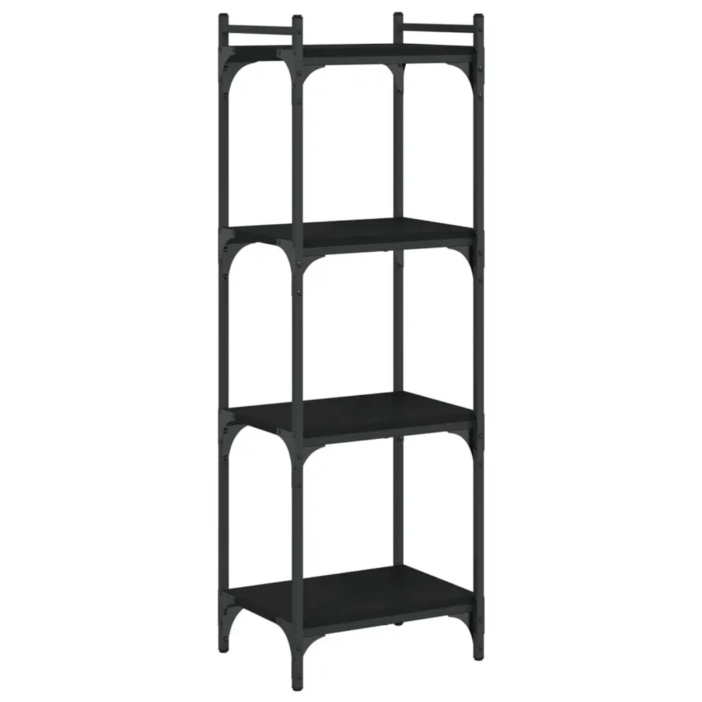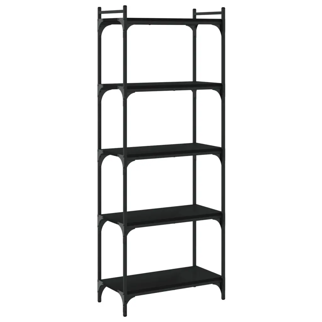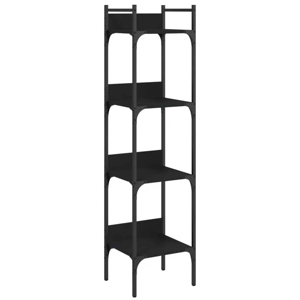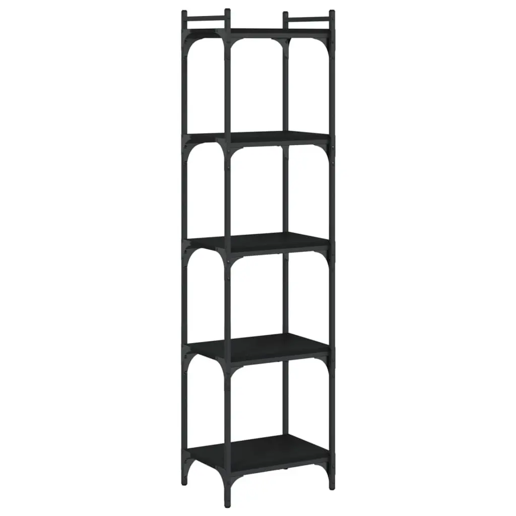 The Isaac Bookcase offers a transitional look with subtle vintage vibes, featuring iron frames with a hammered finish and tempered glass shelving. Its design includes elegantly curved corners, making it a sophisticated addition to any space.
