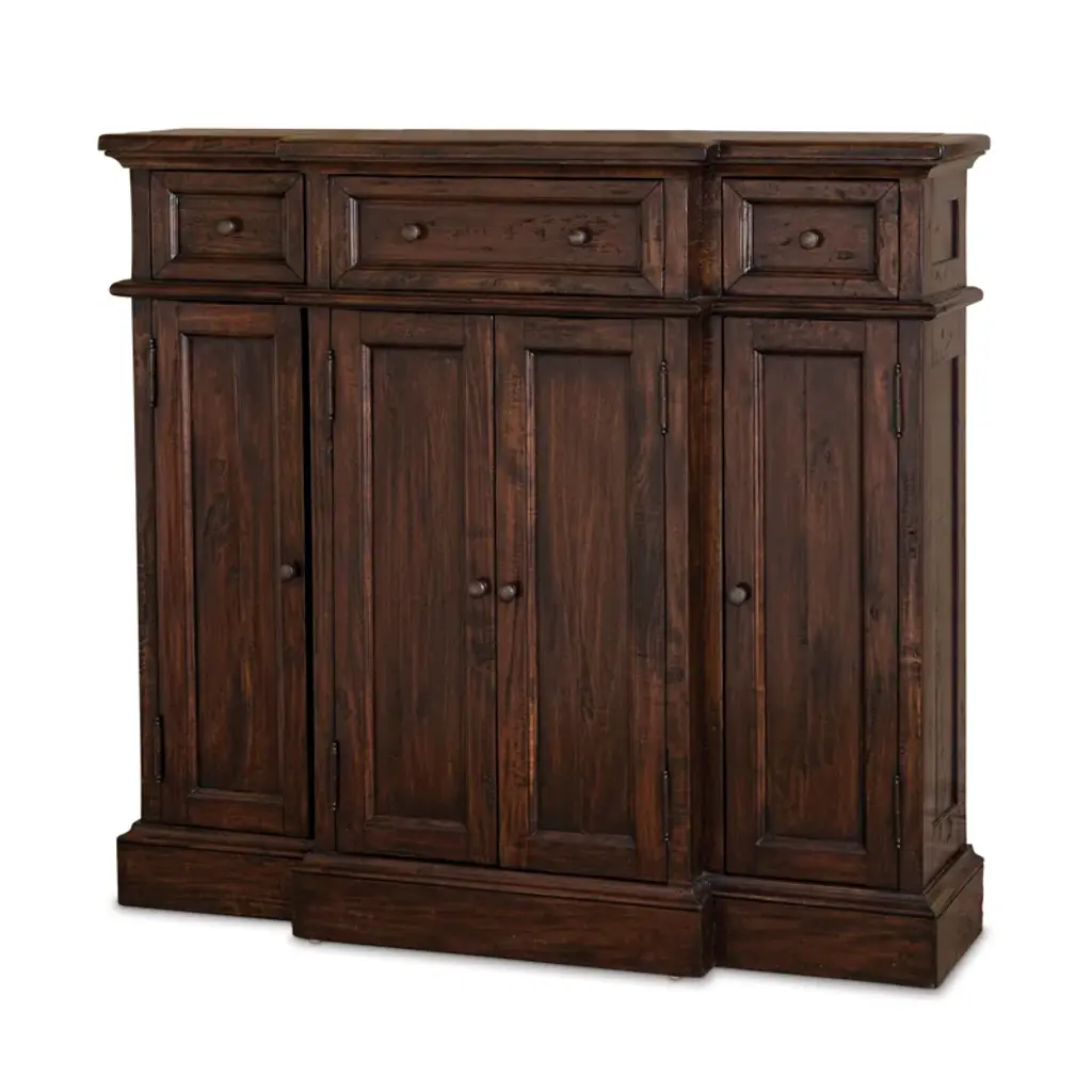 Javanese Vintage Brown Lacquer Eight Door Bookcase With Recessed Panels