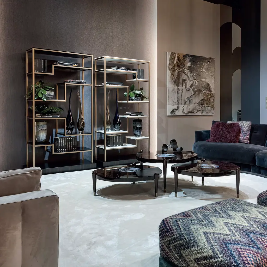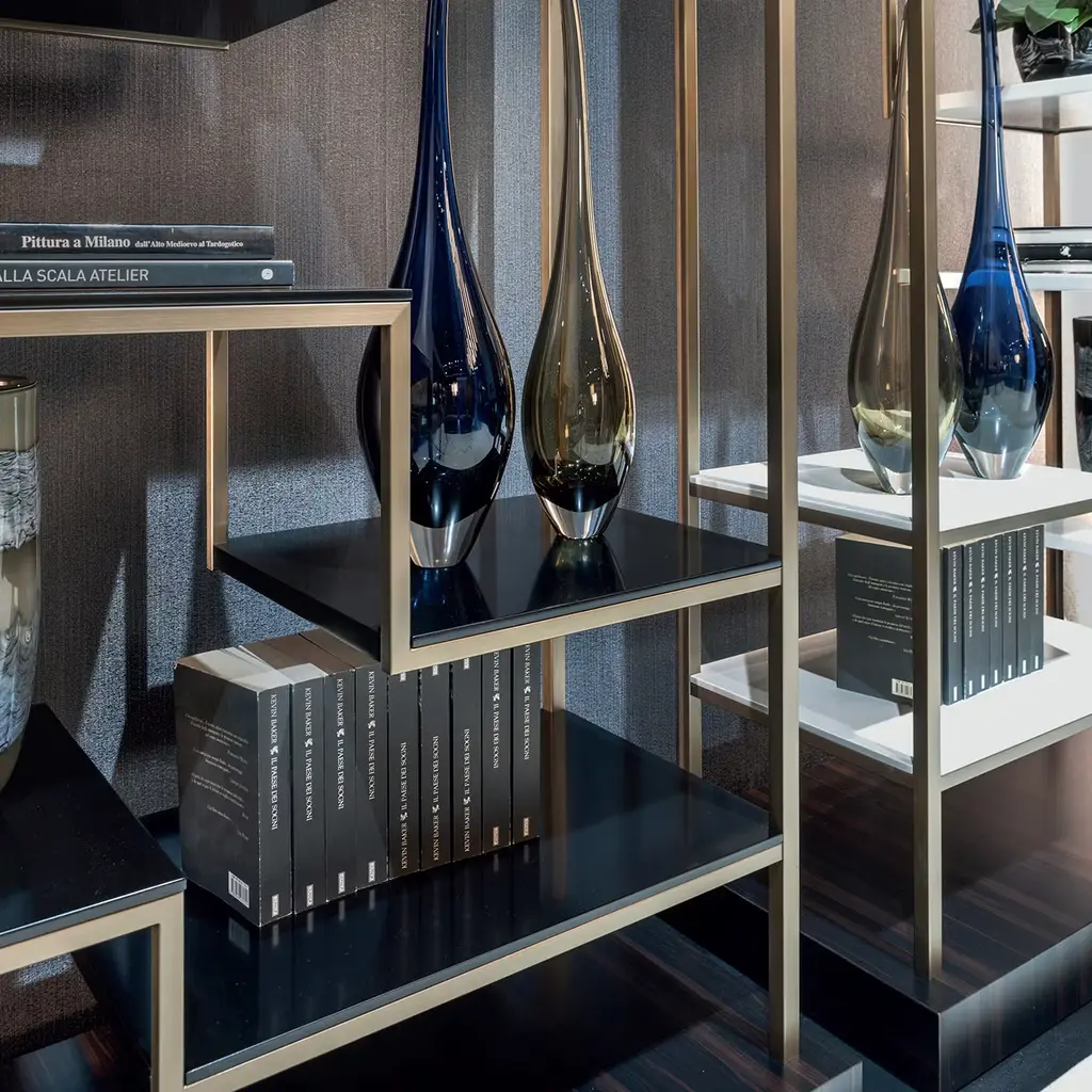 Of mid-century inspiration, the Jazz Bookshelf blends retro touches with a contemporary feel. On a dramatic ebony wood base with a matte finish, the bookshelf is made in bronze-tone metal with your choice of black or white shelves. Thanks to the stair-like shelves, the bookcase is perfect for displaying vases and photos as well as your favorite titles.