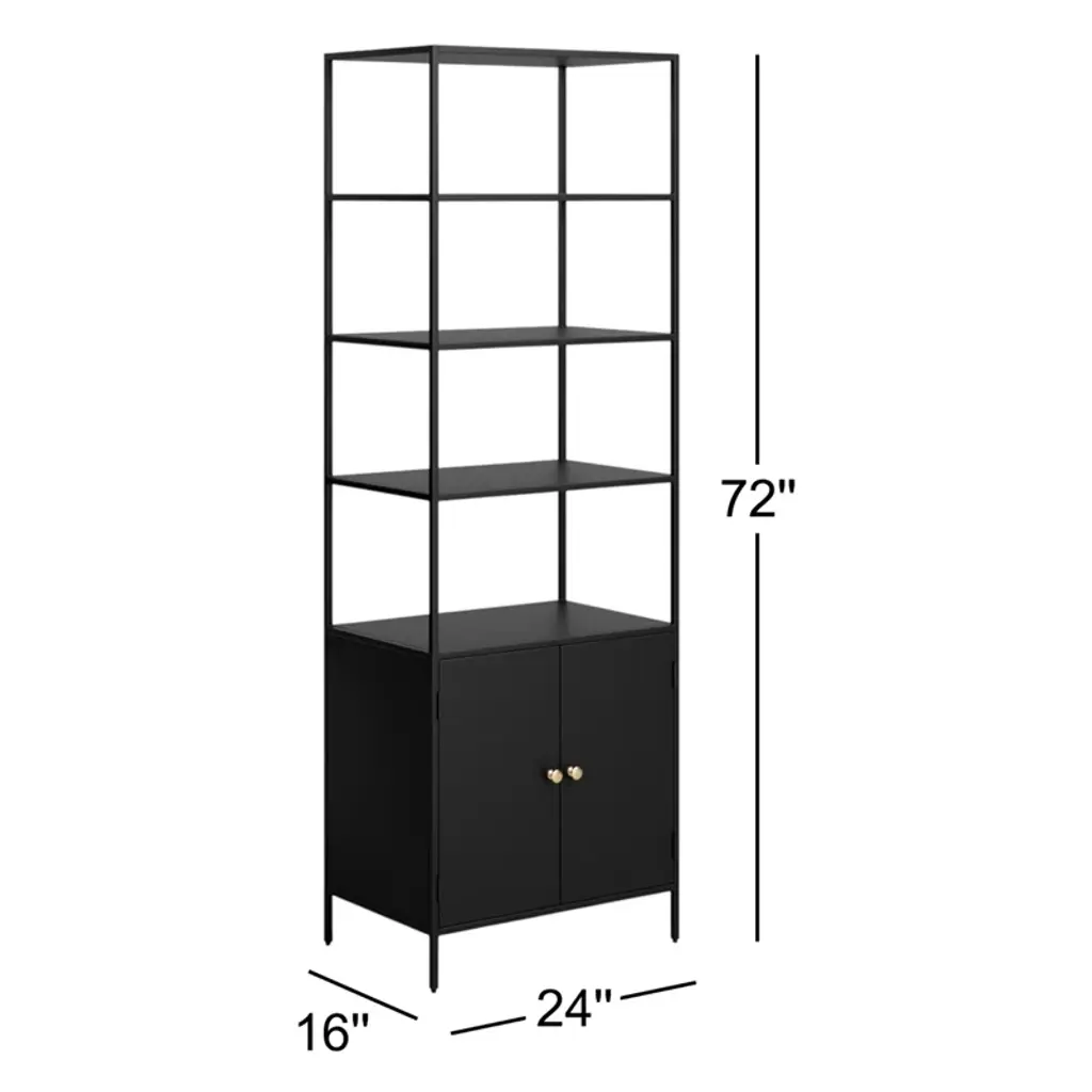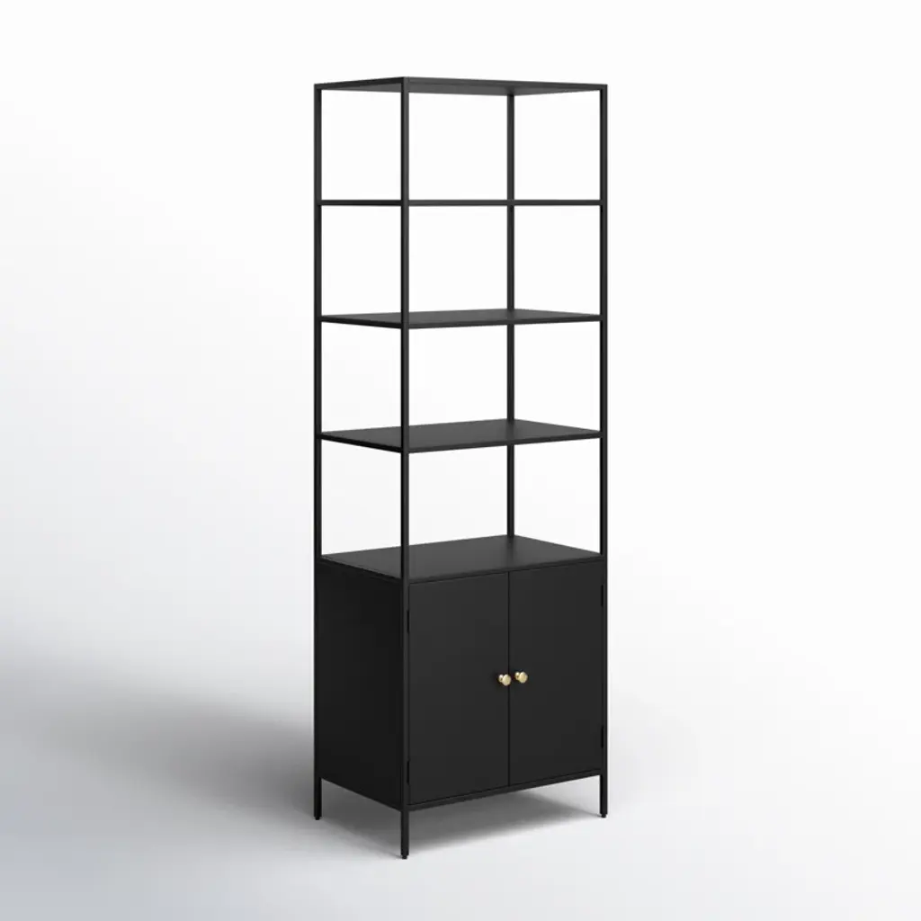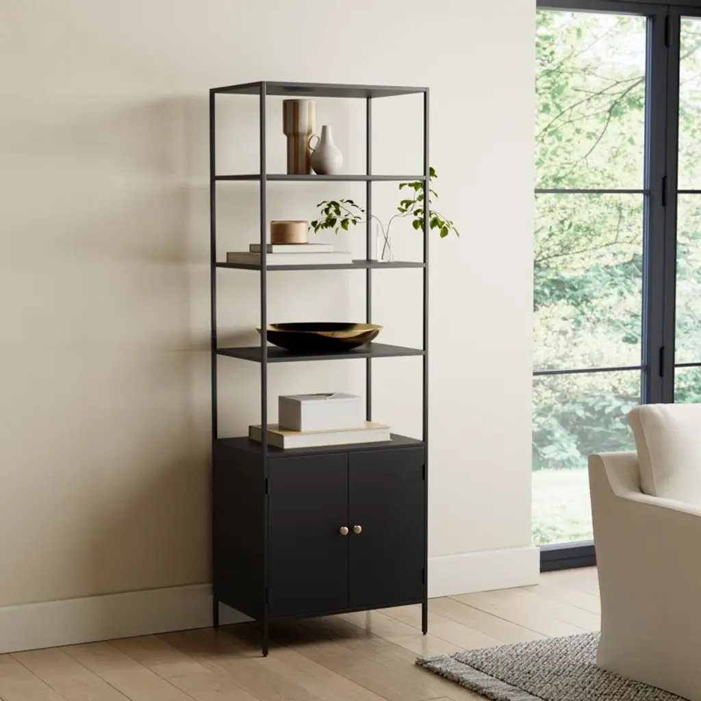 This sleek bookcase combines style with function. Its vertical frame has four scratch-resistant steel shelves for books and decor, along with a two-door cabinet with a gold-hued knob. You’ll appreciate the adjustable levelers that ensure stability on an uneven floor. Pair it with pieces from the collection for a cohesive look.