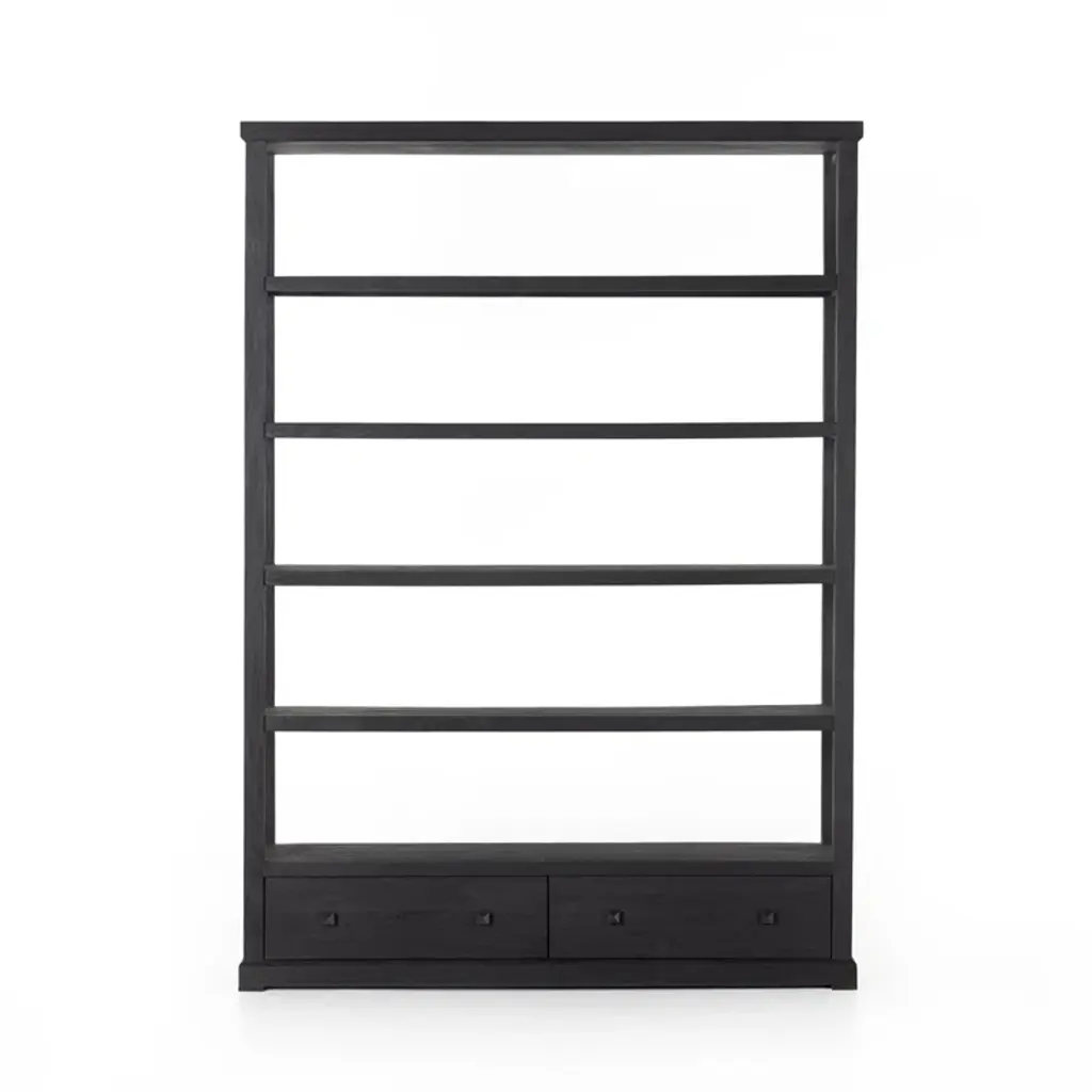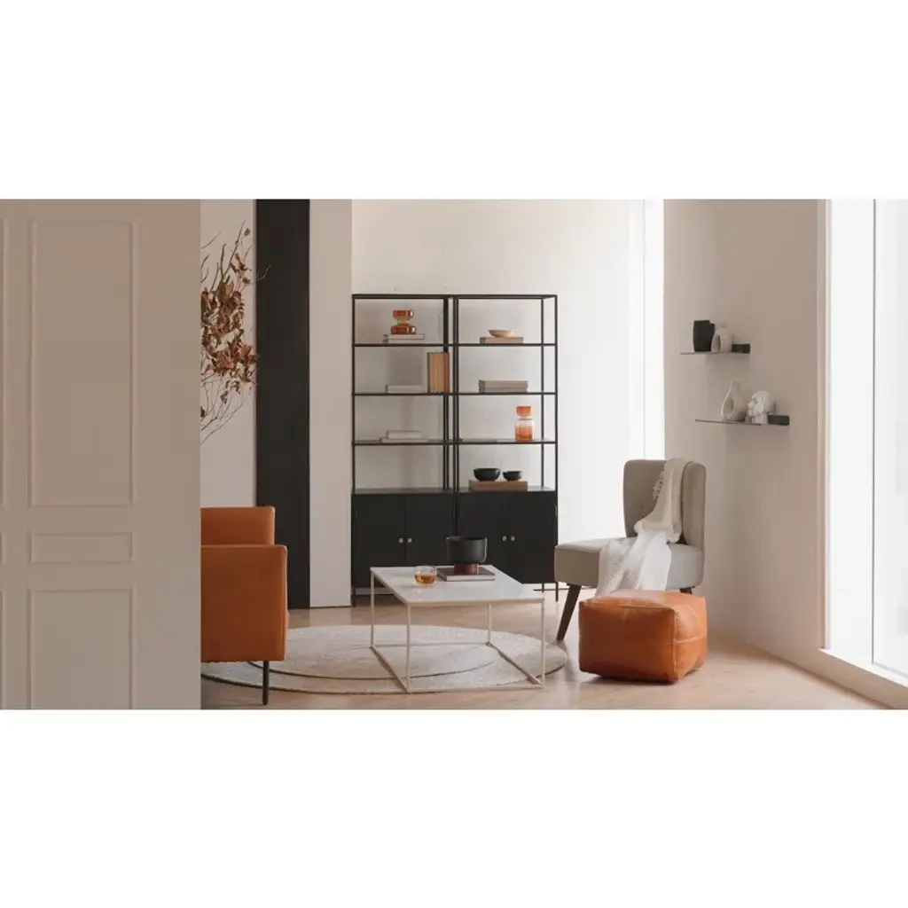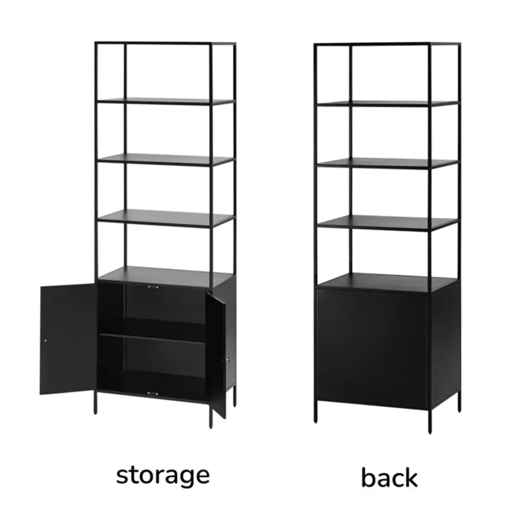 This sleek bookcase combines style with function. Its vertical frame has four scratch-resistant steel shelves for books and decor, along with a two-door cabinet with a gold-hued knob. You’ll appreciate the adjustable levelers that ensure stability on an uneven floor. Pair it with pieces from the collection for a cohesive look.