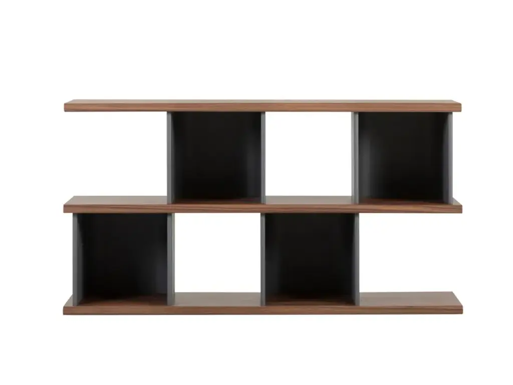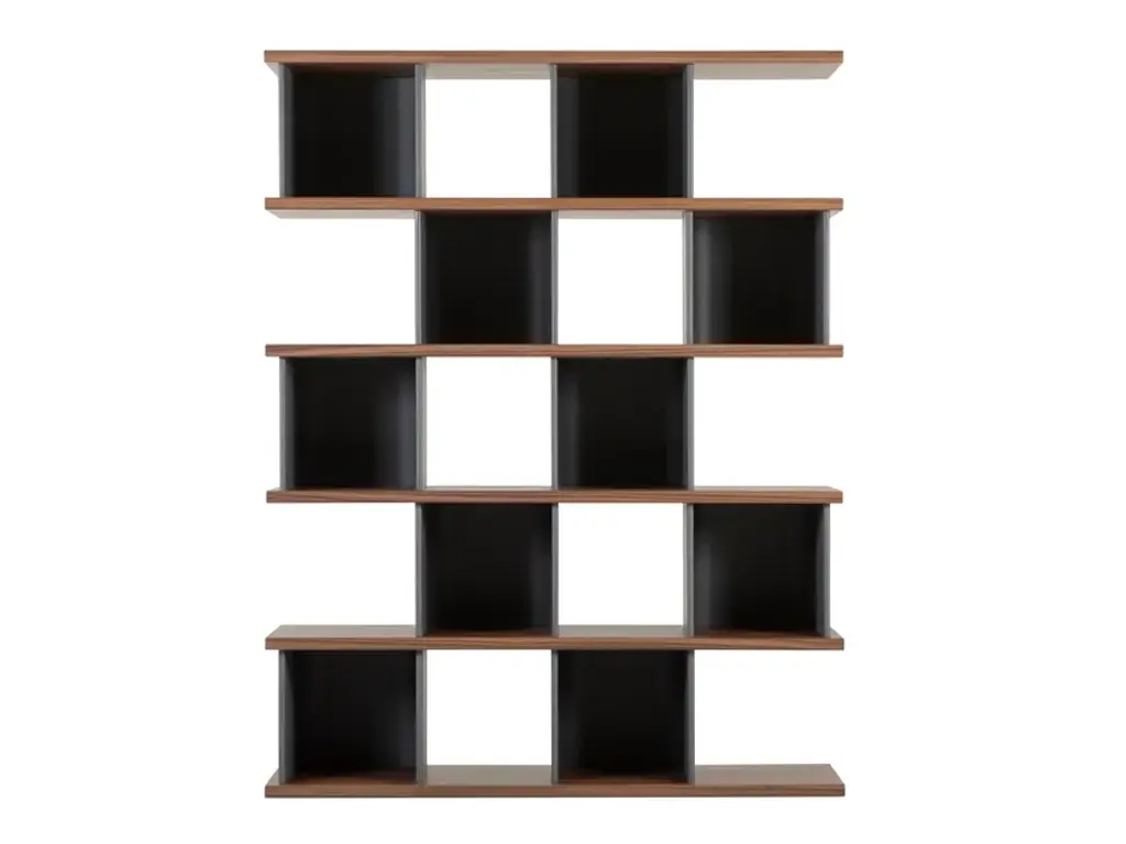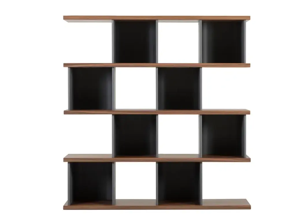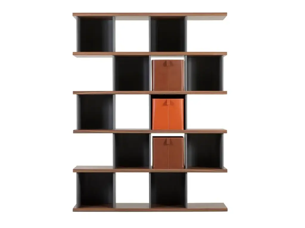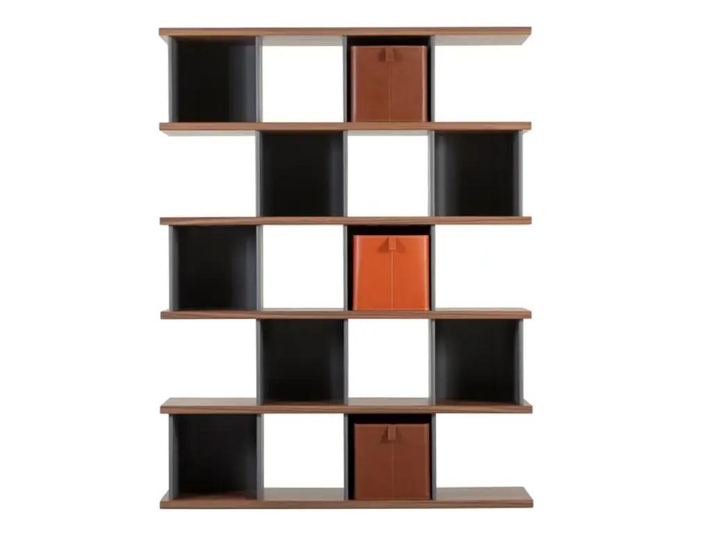 Kaspar, in addition to being a bookcase, also becomes a real dividing wall, with a structure in curved wood, embellished with baskets in leather or Vienna straw. Is possible to choose the color of the shelves and structure, thanks to the wide range of finishes available.