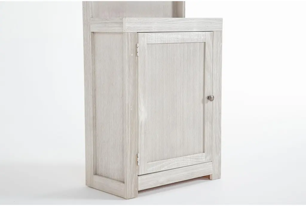 The Kenzie White II Modern Left Facing Pier is an excellent addition to your office or living room. With its drifted white finish and casual style, this entertainment center brings functionality and charm to any space. Featuring multiple shelves and storage options, this piece is as versatile as it is practical.