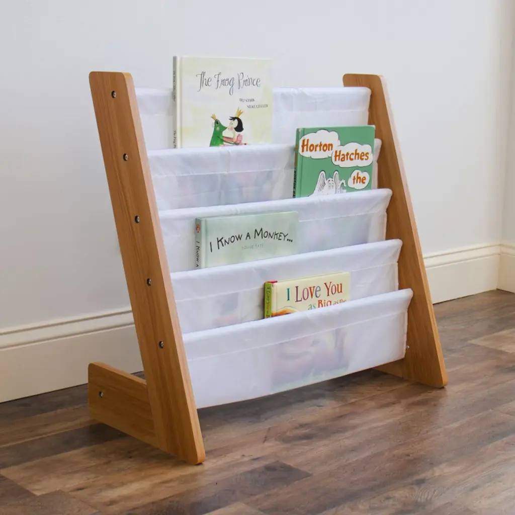 Kids' Supersize 6 Tier Bookrack White/natural - Humble Crew: Sling Book Rack, Mdf Frame, Divided Storage, 30" Height