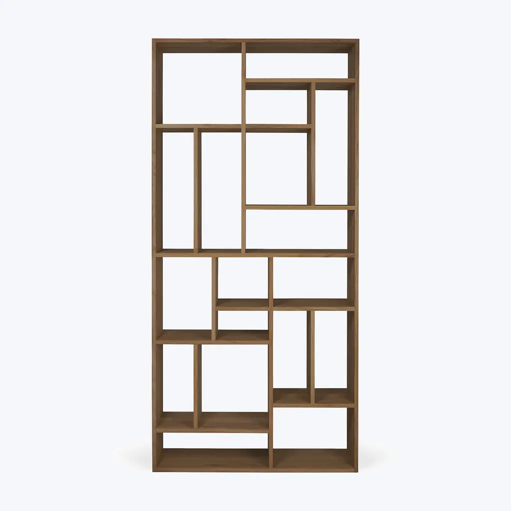 Showcase your cherished objects in creative and stylish vignettes with the M-Rack Bookcase from Ethnicraft. Inspired by the iconic designs of Dutch painter Piet Mondrian, this bookcase features distinctive gridded shelves that make it an ideal choice for both book storage and room division. Whether styled vertically or horizontally, the M-Rack Bookcase effortlessly adapts to your space, allowing you to customize your display to suit your style and needs. Its open shelves offer ample space for displaying books, decorative items, and treasured mementos. Arrange your collection vertically for a dramatic stack or spread it out horizontally for a more expansive look; the possibilities are endless for creating captivating displays that reflect your personality and interests. Made from solid oak, the M-Rack Bookcase combines warm natural wood with bold lines, creating a striking visual contrast. Each piece features subtle variations in wood grain, adding a unique and organic touch to your home decor. These natural differences in texture and color enhance the beauty of the wood, making every bookcase truly one-of-a-kind. Available in both natural and black finishes, this bookcase is designed to complement any interior style. Ethnicraft is committed to crafting furniture that is both dependable and full of character. Each piece in their collection reflects a dedication to outstanding craftsmanship, innovation, and sustainability. As an FSC certified company, Ethnicraft prioritizes the use of responsibly sourced wood and environmentally conscious manufacturing processes. Production waste, such as leftover wood and sawdust, is reused as fuel in their drying ovens or compacted for use in pallets, adhering to a zero-waste policy. The M-Rack Bookcase embodies Ethnicraft's ethos, offering a versatile and stylish piece that enhances any home. Explore endless possibilities for creative expression and let your beloved objects shine in style with the M-Rack Bookcase from Ethnicraft.