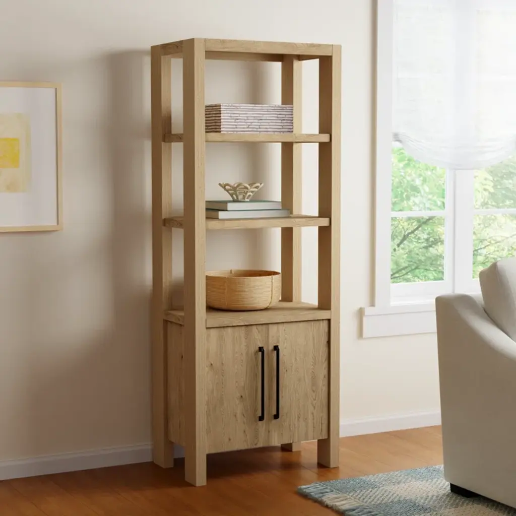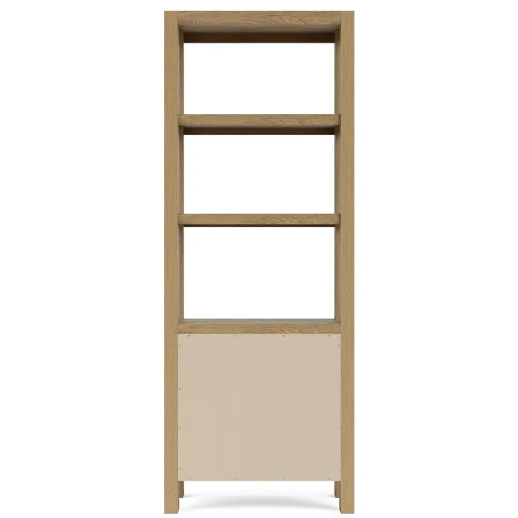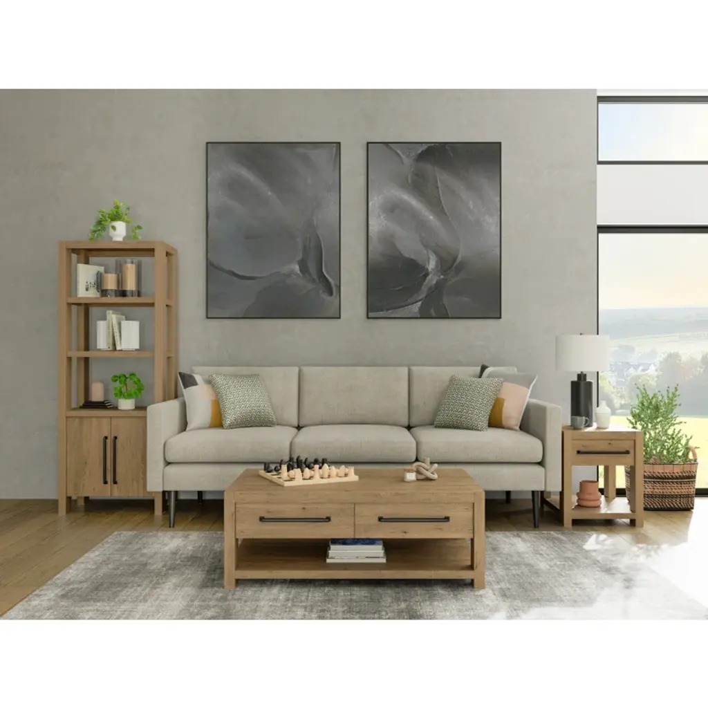 Laroche presents a simple yet stylish design, meticulously crafted with attention to detail. The Pale Oak finish enhances the natural beauty and texture of the Pin Knotty Oak. Custom oversized bar pulls add to a sleek, contemporary feel. The clean lines, minimalistic aesthetic and warm finish harmoniously blend nature with urban living, creating an inviting ambiance for your home.