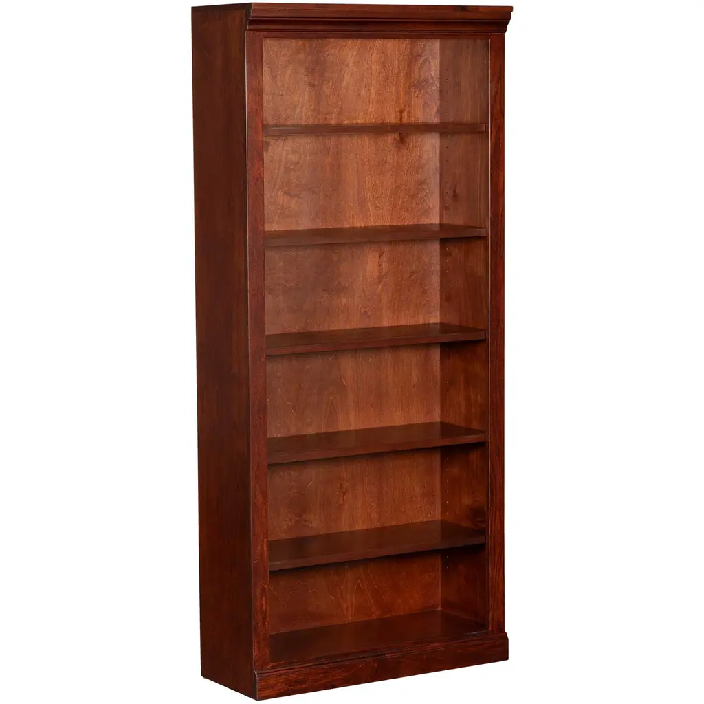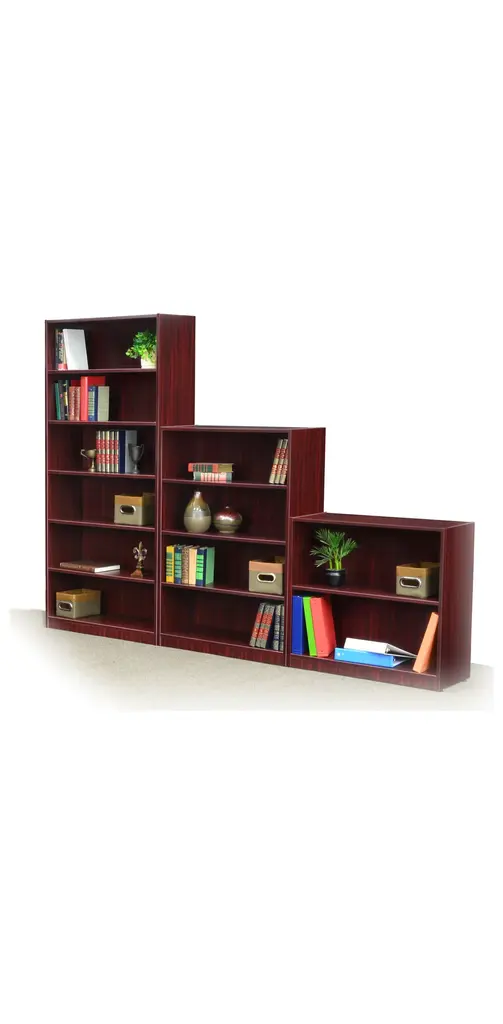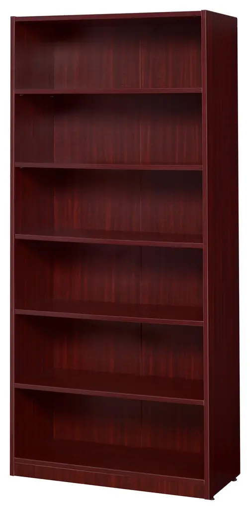 The Legacy Storage Collection offers it all from combo files and bookcases to stackable storage and laterals. This tall bookcase is great for offices, libraries, living rooms, entryways and more. The shelves are plenty wide and deep enough for both storage and display. It has one fixed bottom shelf and five adjustable shelves that can be moved in 1-inch increments. Finished in a classic Mahogany laminate, storage components coordinate with other Legacy furniture which makes customizing easy. The Legacy collection is constructed of a 1-inch thick thermal fused melamine laminate with a 3-millimeter commercial grade matching PVC edge. Laminates are scratch, stain and scald resistant. Legacy casegoods are backed by a 10-year limited manufacturer's warranty.