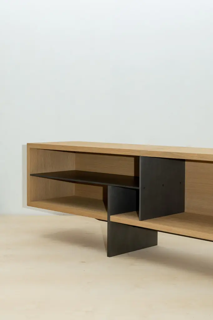 Lungo Low Bookcase by Simon HamuiDimensions: D 330 x W 42 x H 60 cmMaterials: Wood, MetalAlso available in different dimensions. Please contact us.Low bookcase made out of wood with metal legs that intercept with the shelves to achieve a very geometric look.Simonhamui Collection is a line of high-end furniture created by Simon Hamui. The collection is another Expansion of the brand that brings together Classic pieces and represents his style and body of work throughout the years.The pieces in the collection are timeless and versatile and can work well in a variety of spaces both individually or in conjunction.