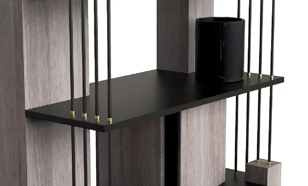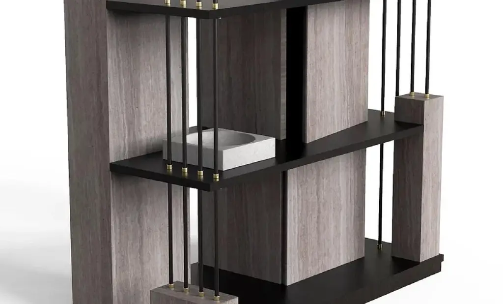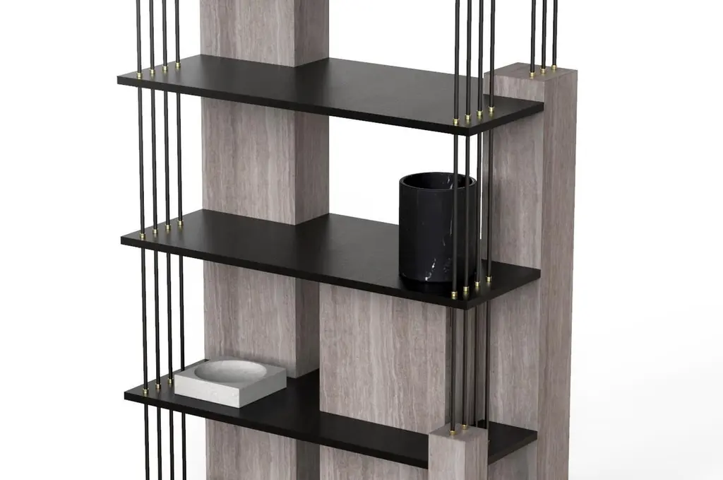 Manhattan bookcase by Marmi SerafiniMaterials: Oak Grey marble, wood, brass, metal.Dimensions: D 50 x W 102 x H 175 cmAvailable in other marbles.As the famous New York skyline, this elegant shelves bookcase is made up by model sized marble skyscrapers.The monolithic and squared lines of the marble are welcomed by metallic features which beautify the whole.Marmi Serafini is located in a small city named Chiampo, internationally well known for its marble production.It's origins stem from Mr. Bruno Fortunato's passion for marble which was then passed on to his two sons, Alessandro ad Luca, who eventually took over.Marmi Serafini has, with the passing of time, transformed into one of the most innovative marble factories, producing extremely design-driven products and objects.