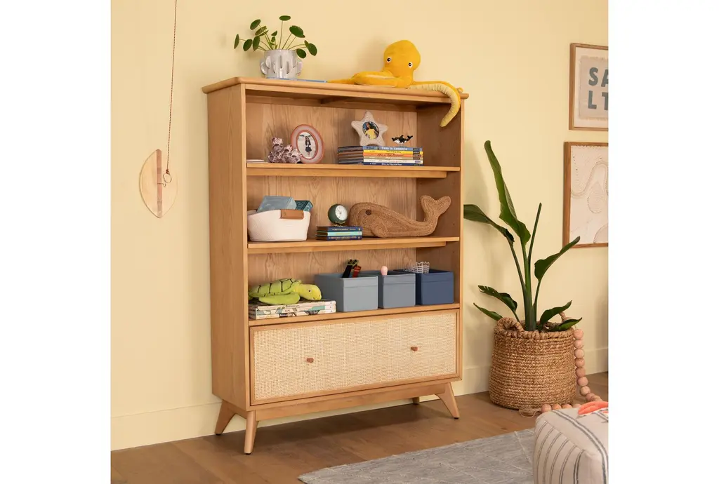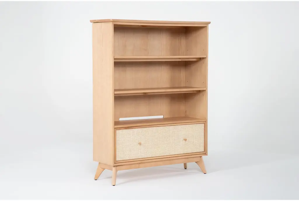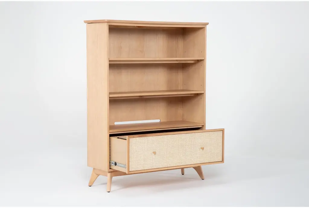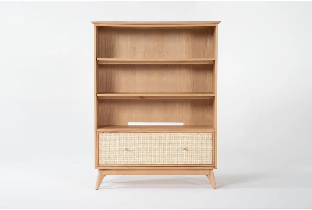 Mariko Natural 60" Bookcase With Cane Front Drawer