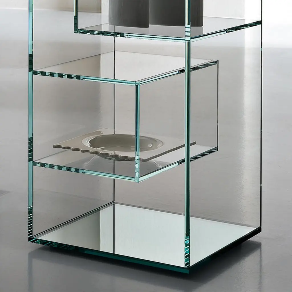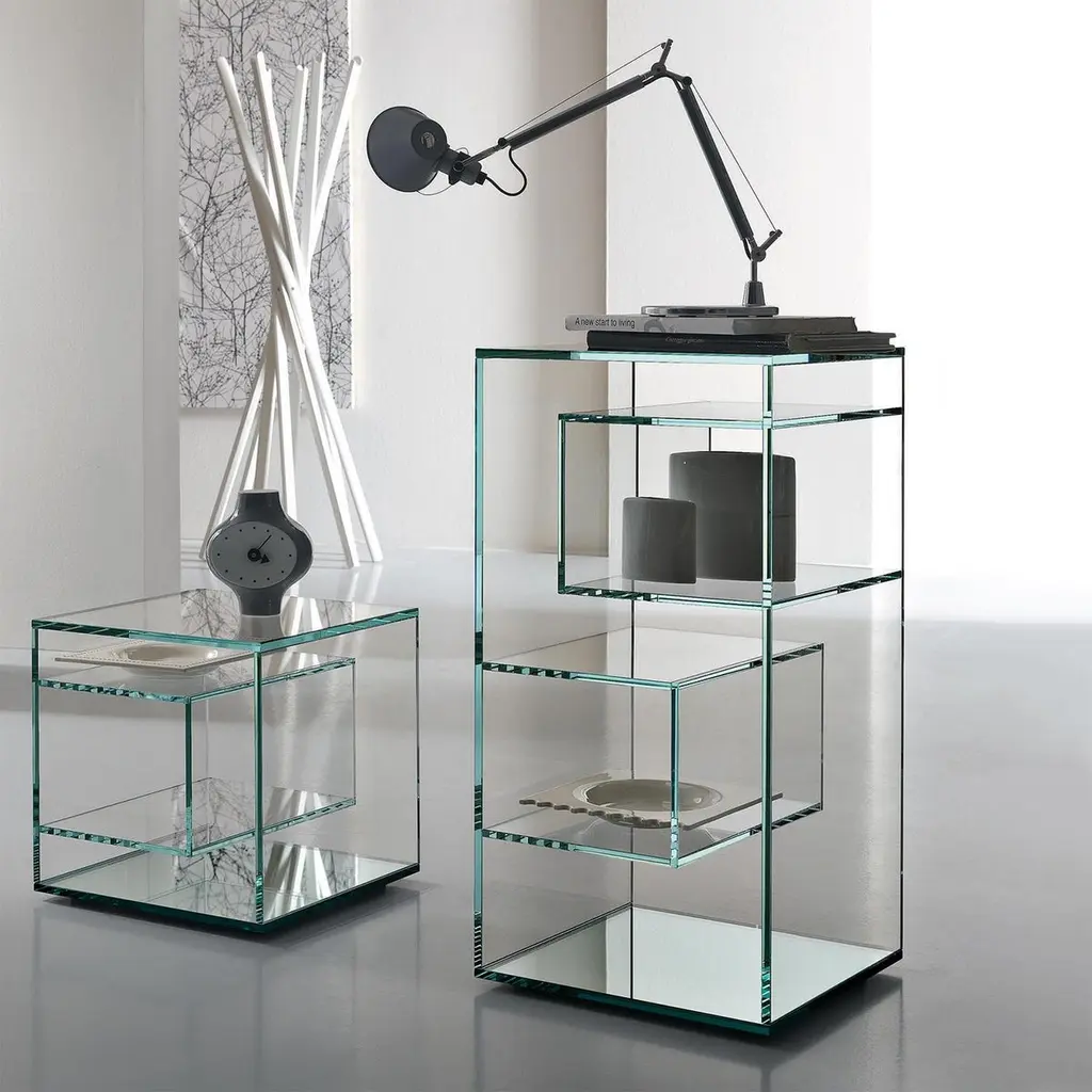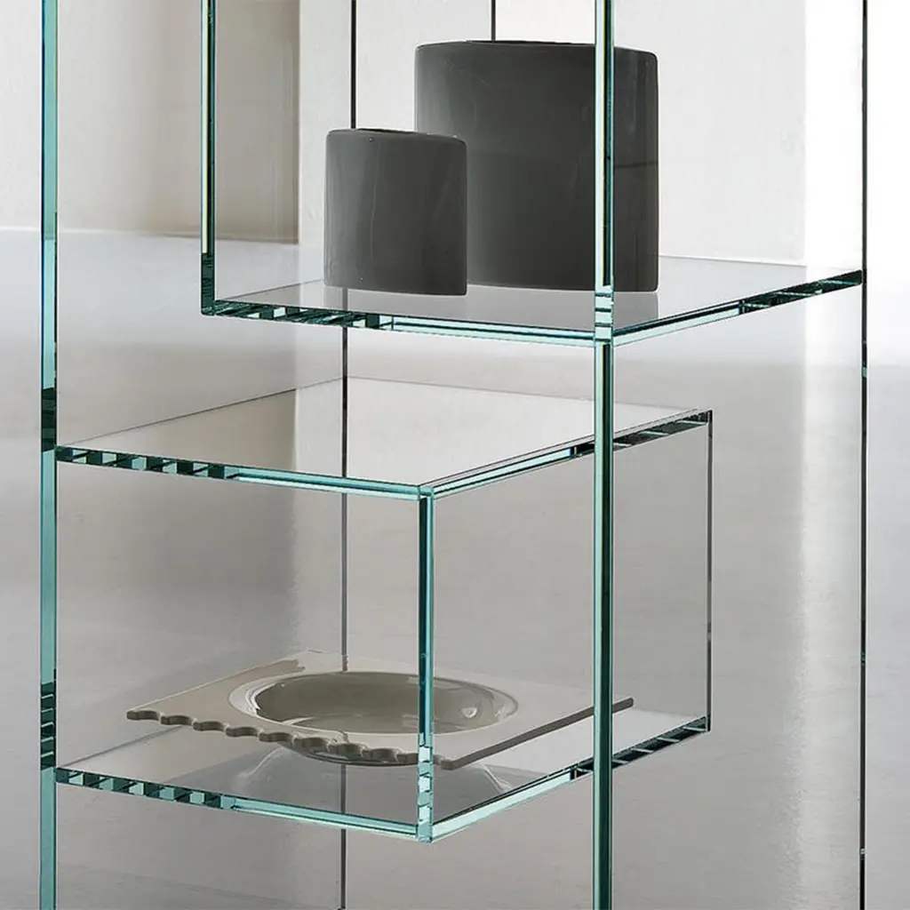 Bookcase Marlena Small with all structure in clear glass.Also available in smocked glass, on request.