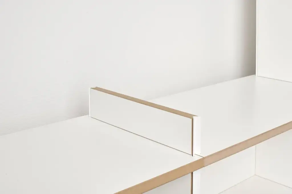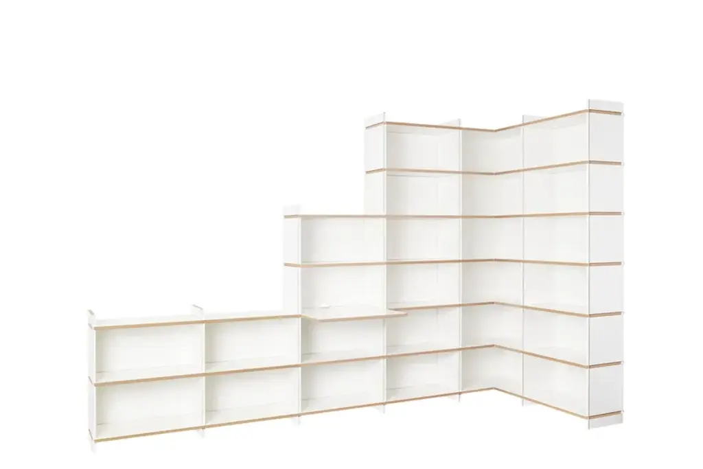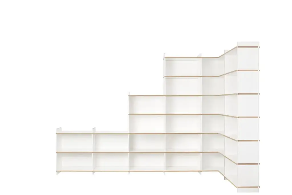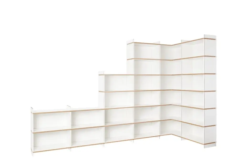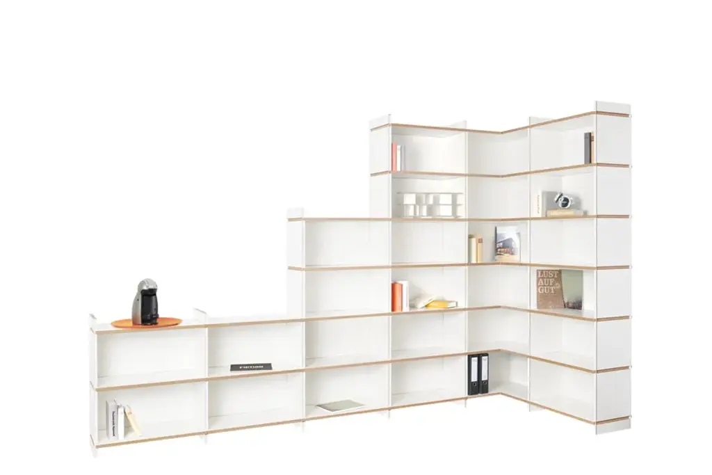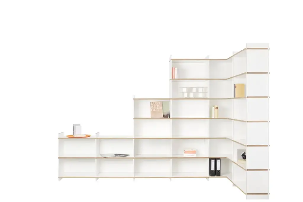 Mehrfach is an individual shelving system, which can be built without additional connecting means in a variety of forms. The system is available in three heights. Whether as a soloist, sideboard, room divider, or as an endlessly connected shelf. Mehrfach can be customized without effort, any room situation, individually and uniquely. Tools are not needed. With the extension to the Tojo-mehrfach eckmodul the shelf can be build over the corner. Right and left, the shelf can be expanded or supplemented as desired with the three different height modules. With the shelf extension schreibboden) there is another element suitable for the shelving system. Wonderful use as a small, integrated writing secretary with cable passage in the back wall. Useful to put down a folder in which something is to look up.