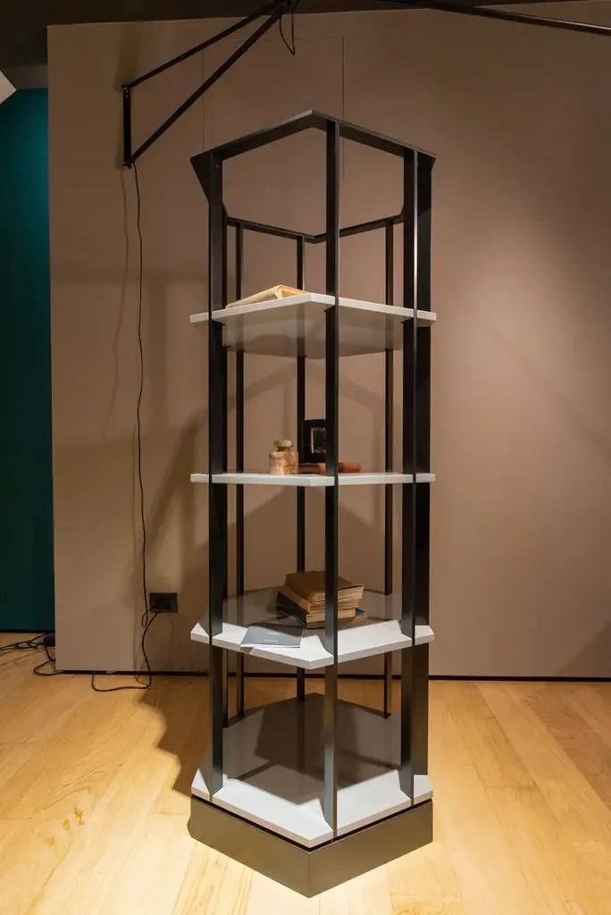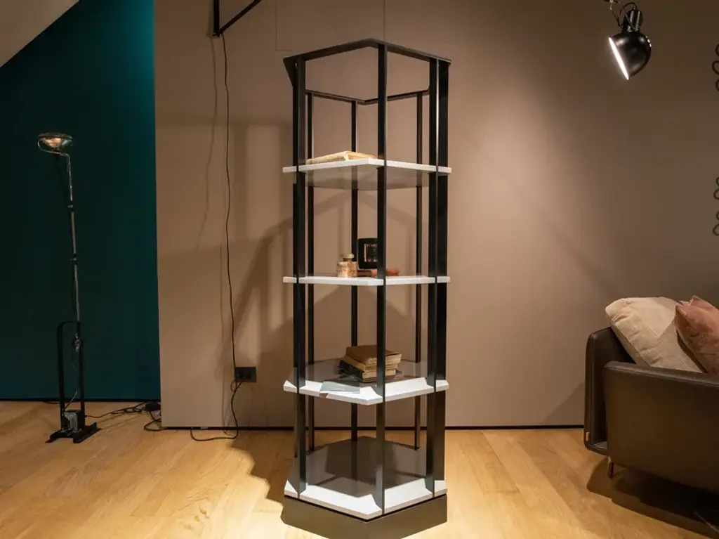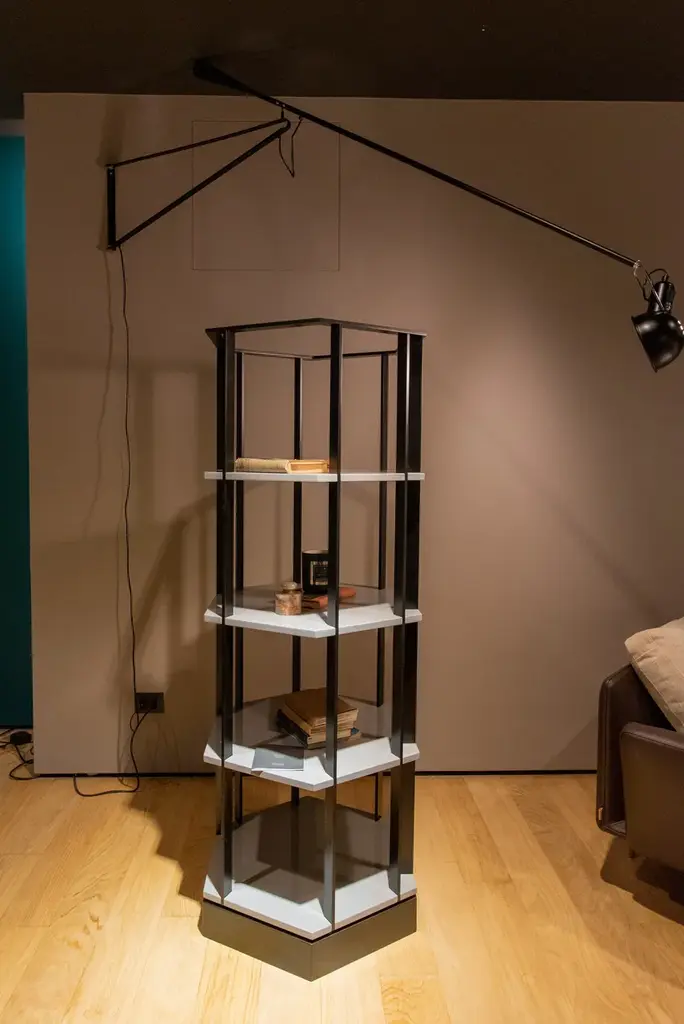 ******************************************************************************************PURCHASE INFORMATIONArticle displayed at the Archiproducts Bari showroom - Corso V. Emanuele II, 189 Bari.The product may have imperfections due to exposure.For more info or photo details contact the address bari@archiproducts.com******************************************************************************************Sebastian is a hexagonal bookcase with metal structure and wooden base painted in matt black. The shelves are in glossy lacquer, stone color.