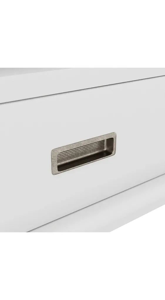 Handcrafted using the finest quality solid rubberwood hardwood & metalFeatures six (6) shelving compartments and two (2) drawers for storageRecessed drawer pulls in an Antique Brass hardware finishStyle evokes an era long past with its Mid-Century Modern style roots and retro design elements