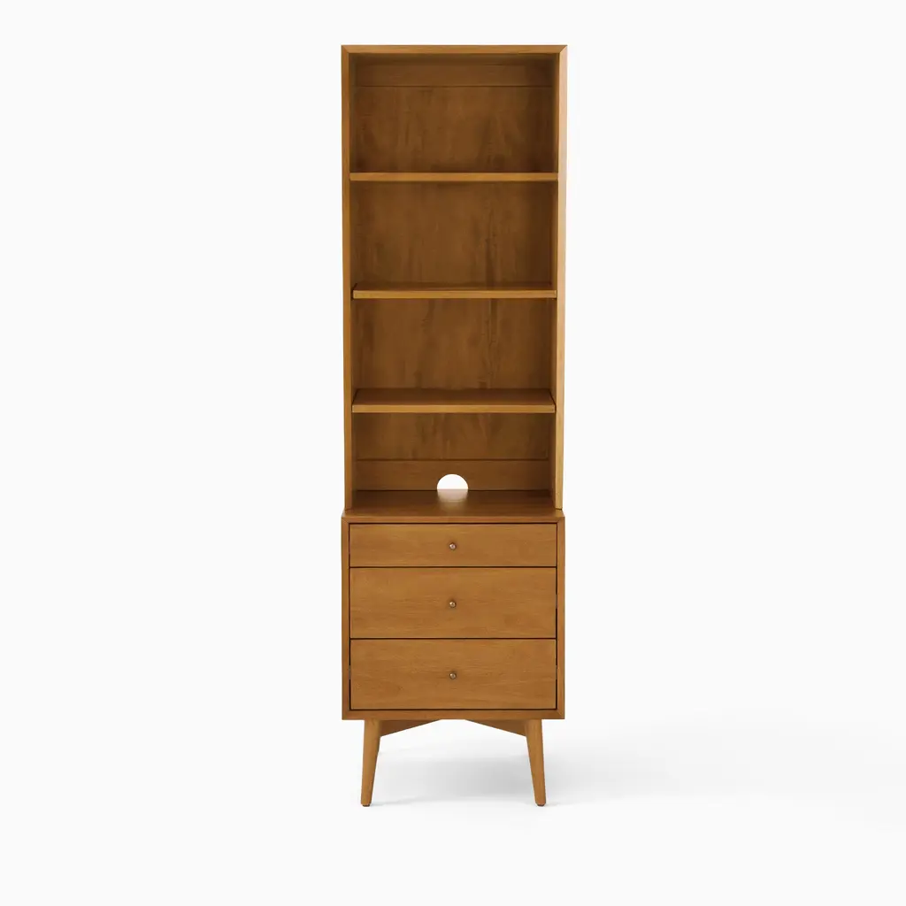 Mid-Century Narrow Bookcase W/ Closed Storage (20.5")