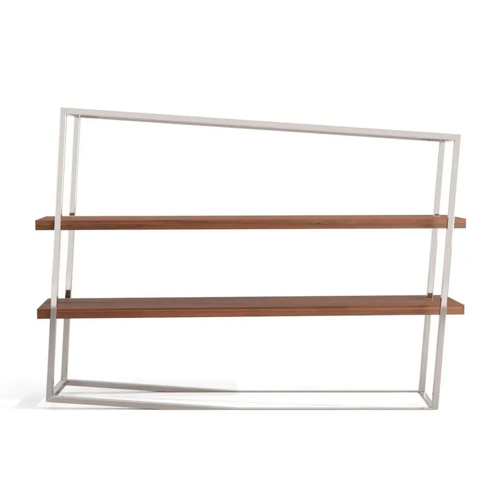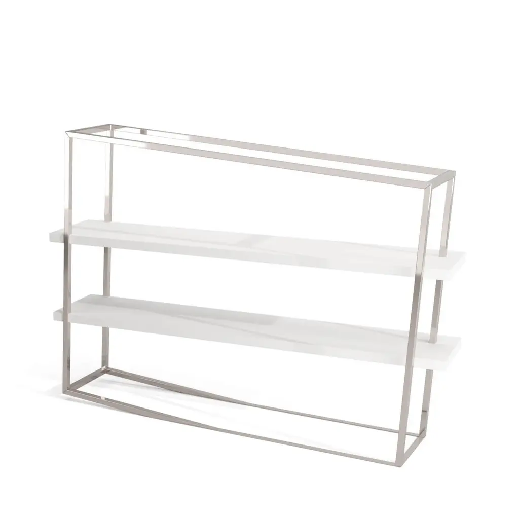 Modern Accent Bookcase With Shelves In White Lacquer & Brushed Stainless Steel