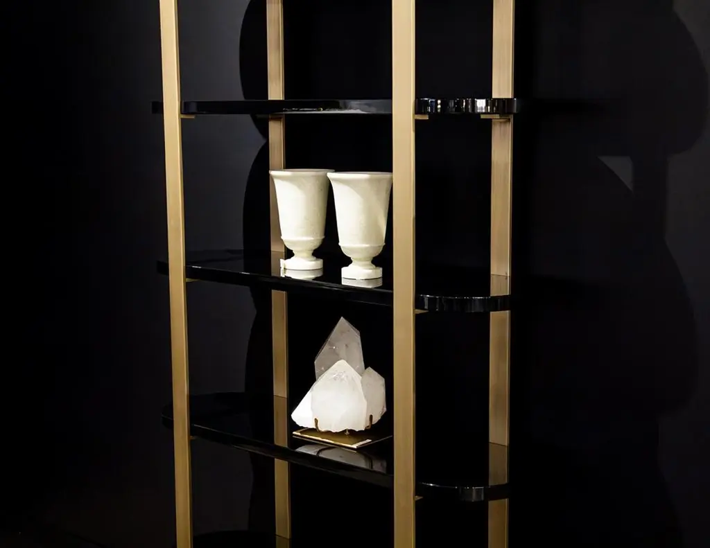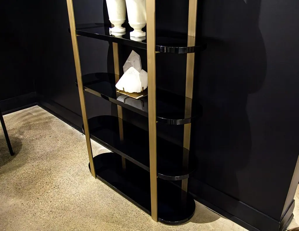 Modern Bookcase Cabinet In Brass And Black Lacquer